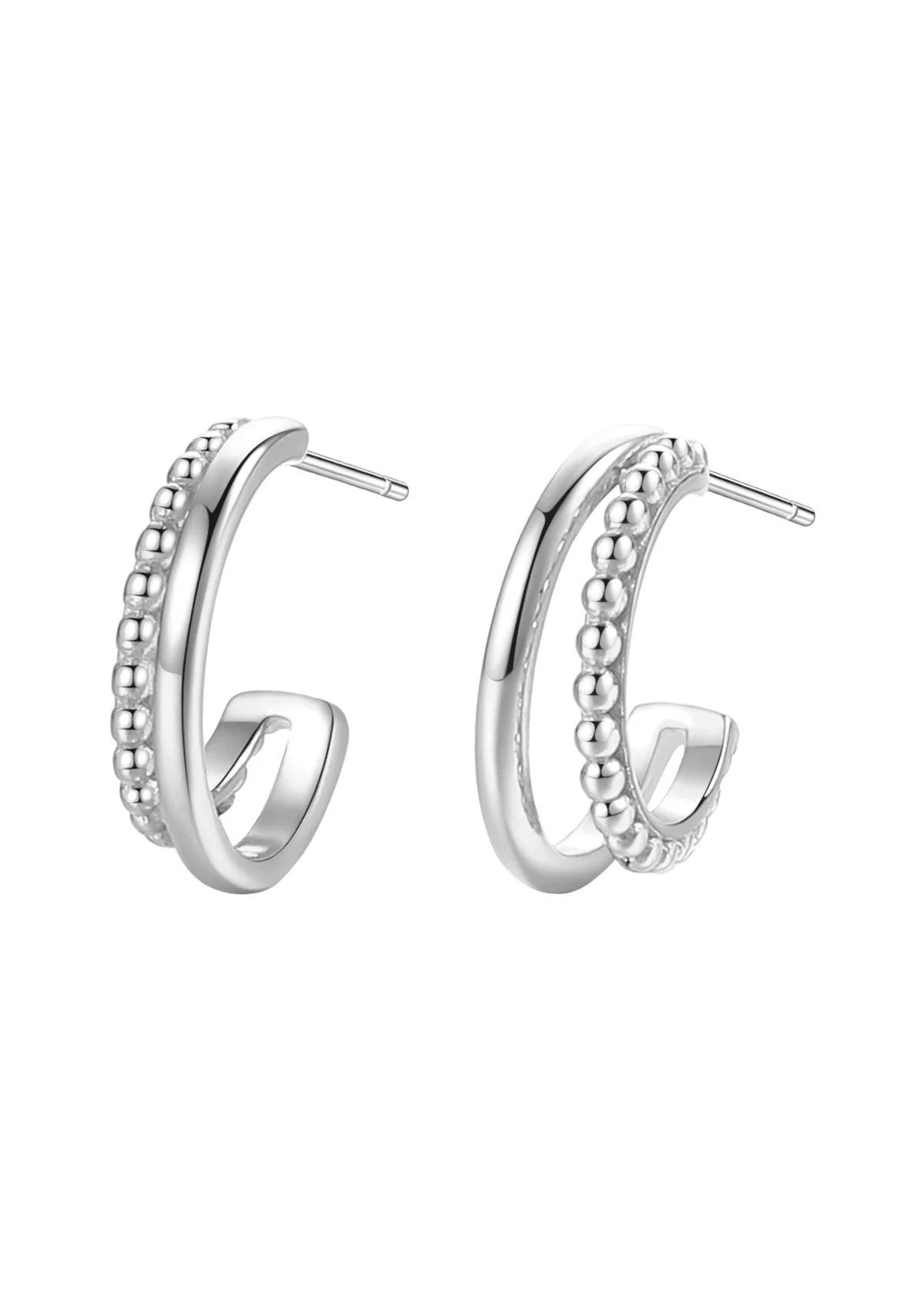 Gekennzeichnet durch ein einzigartiges Design, ist dieses Paar Ohrringe aus Sterlingsilber zweifellos ein Trendsetter. Diese Doppel-Creolen verfügen über einen kleinen zarten Reifen besetzt mit winzigen Metallperlen, der einen größeren Reifen überlappt. Diese sind perfekt, um Ihrem Outfit das gewisse Etwas zu verleihen.