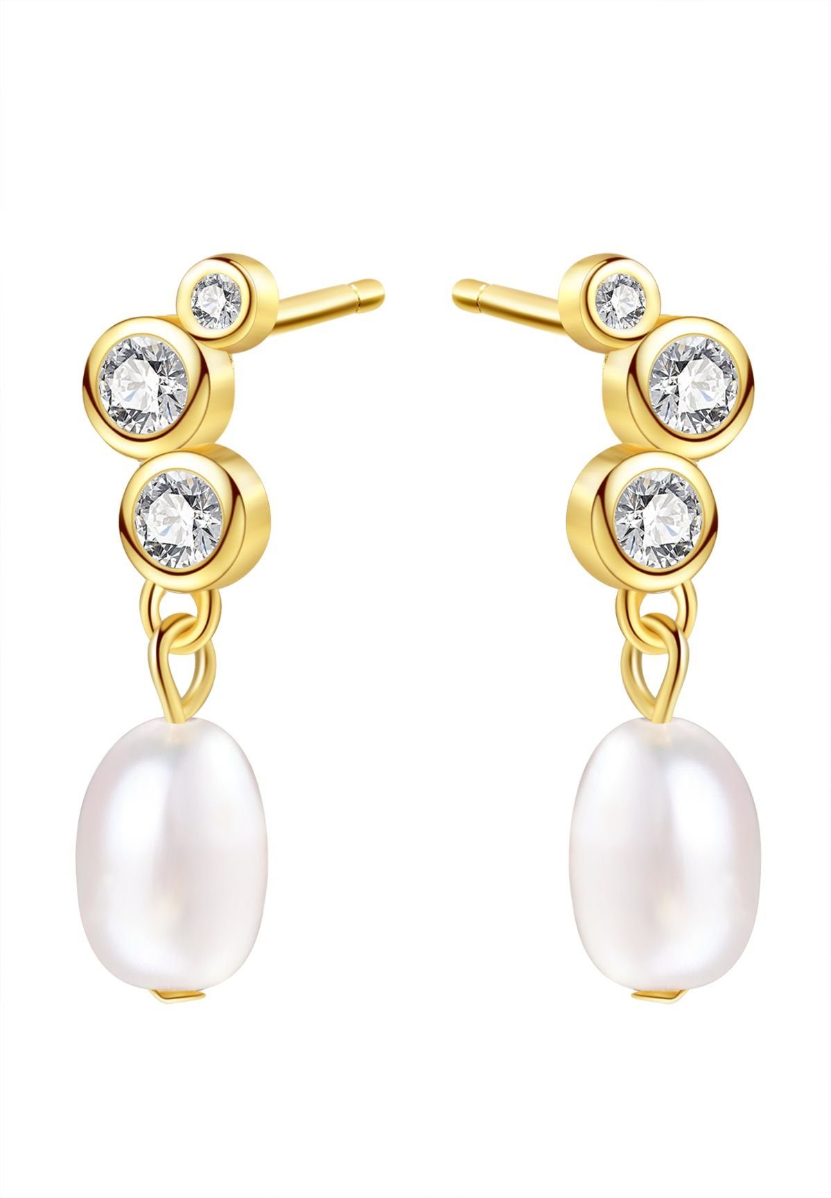 Elegante Tropfen-Ohrstecker aus 925 Sterling Silber mit vergoldeter Oberfläche, Zirkon- und Perlen-Akzenten – feminine Kombination aus Luxus und Zartheit. Diese vereinen klassische Perlen-Ästhetik mit modernen Tropfenformen – aktuell gefragt in Frühling/Sommer.