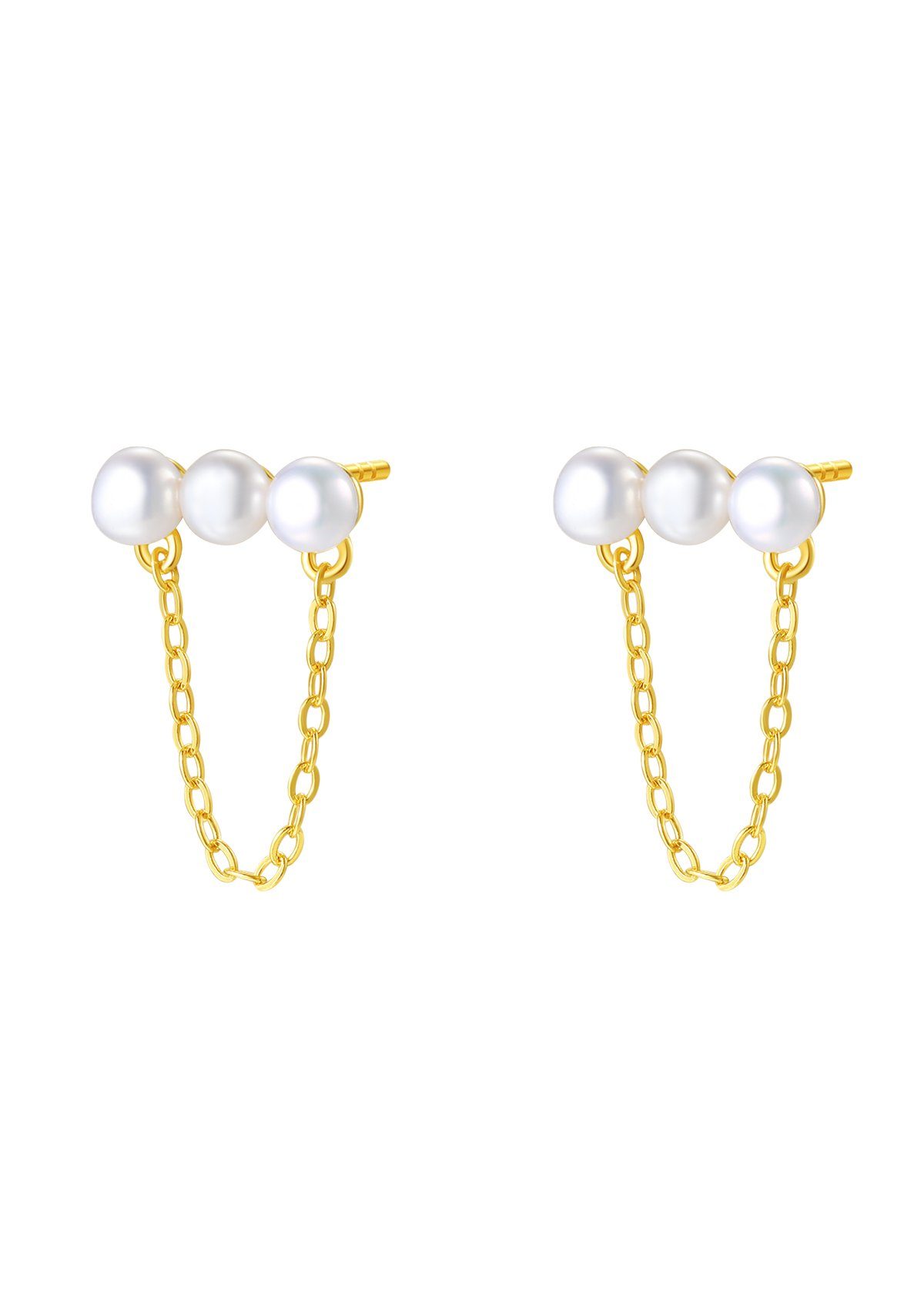 Elegante Sterlingsilber Ohrringe verziert mit jeweils 3 Süßwasserperlen, geeignet für jeden Anlass. Die Ohrringe sind in 2 Farben erhältlich: Silber und Gold. Die goldenen Ohrringe sind zusätzlich mit 18K Gold überzogen.