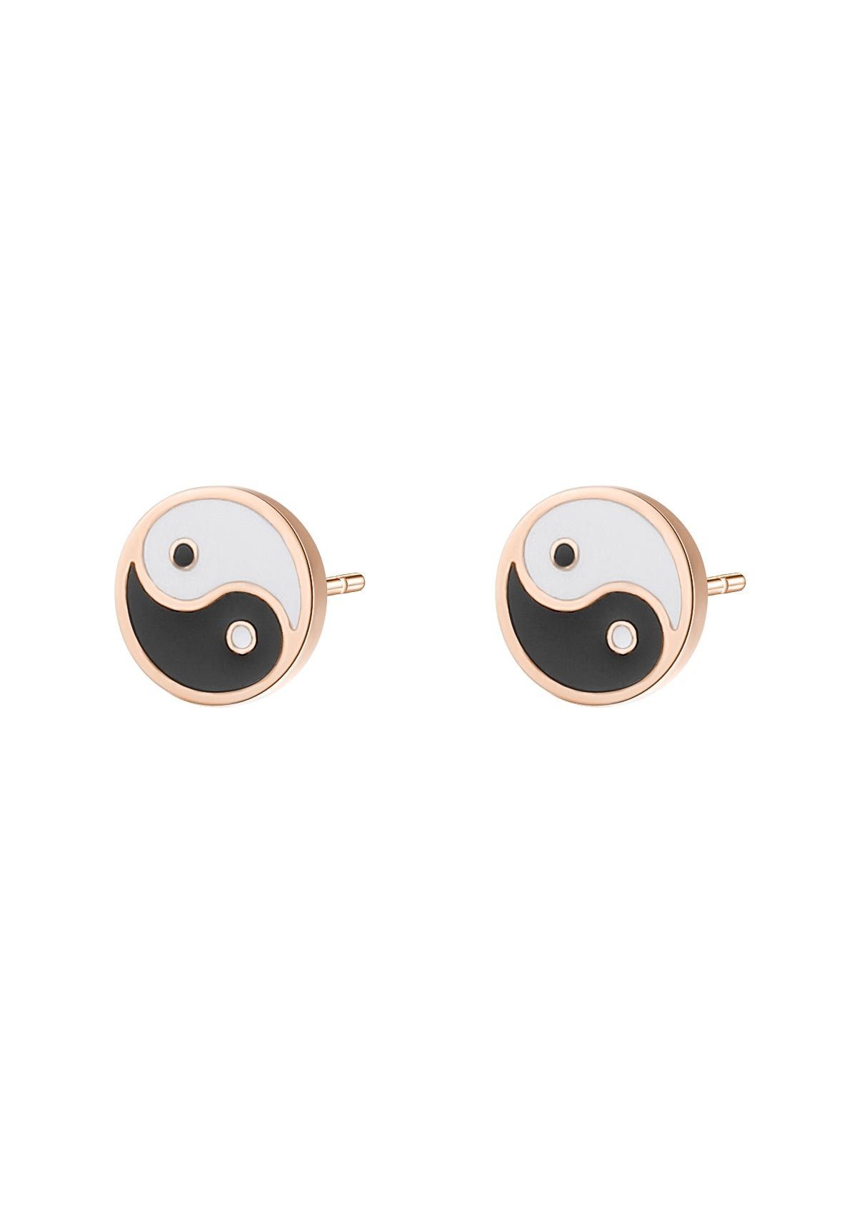 Dies ist ein Paar Edelstahlohrstecker mit einem schwarz-weißen Yin-Yang-Symbol, das aus zwei ineinandergreifenden Tropfenelementen besteht, die jeweils in der Mitte einen Kreis im Kontrast zur Hälftefarbe haben. Sie schließen mit Butterfly-Verschlüssen. Zeitlos, elegant und vielseitig, diese Ohrstecker werden Dein ewiger Favorit sein, da sie einfach zu allem passen! .