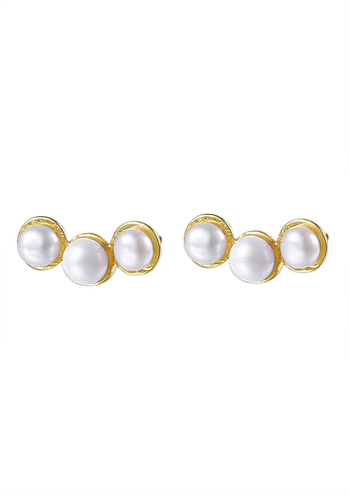 Eine perfekte Wahl für alle, die einen klassischen Perlenohrstecker lieben, sich aber nach etwas Aufregung sehnen. Diese Ohrringe aus Sterlingsilber sind mit drei weißen Perlen besetzt, die in Form eines Halbmonds angeordnet sind. Tragen Sie diese Ohrringe mit einem einfachen weißen T-Shirt und Jeans für einen lässigen Look oder mit einem Kleid für einen formellen Anlass.