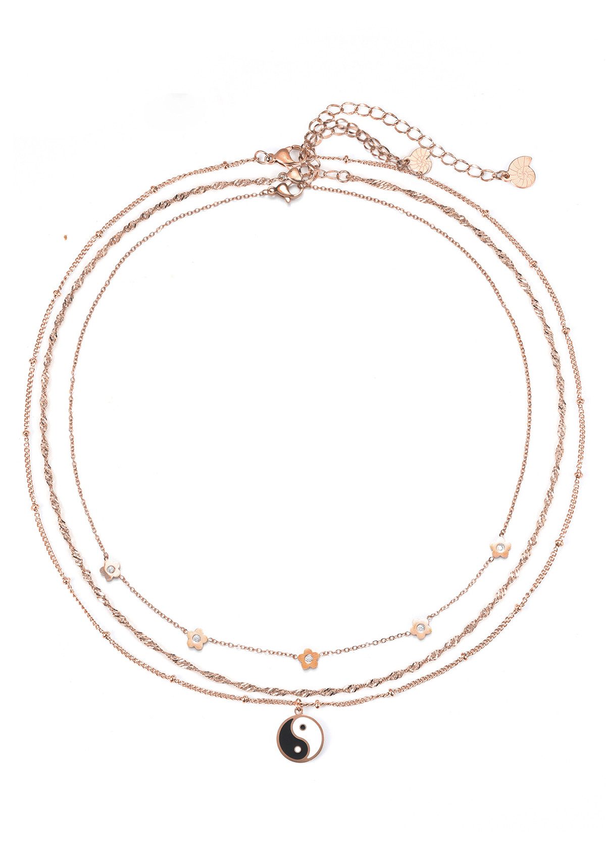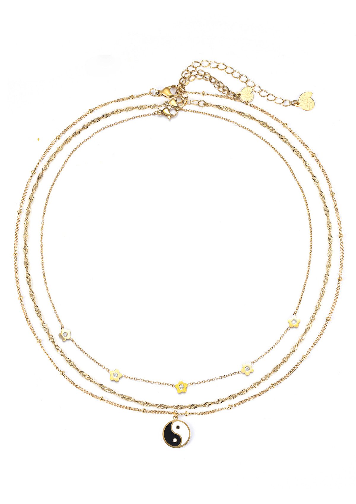Schmuckset Harmonie, 3er Layer Ketten Set Blumen und Ying Yang