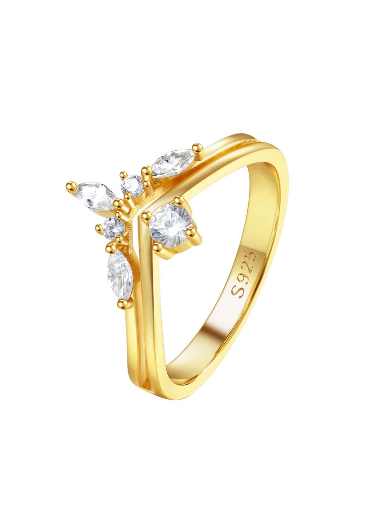 Wir bieten jeder Queen genau den Ring, den sie verdient. Edler Ring mit leichter V-Form, geschmückt mit 6 Zirkoniasteinen (3 runde und 3 in Marquiseschliff) und Ringschiene, die vorne geteilt ist. Der Ring passt zu zahlreichen Looks und ist einfach zu kombinieren. Feminin und zeitlos klassisch, sorgt er immer für einen stilvollen Auftritt und wird jedes Outfit mit einer eleganten Note unterstreichen.