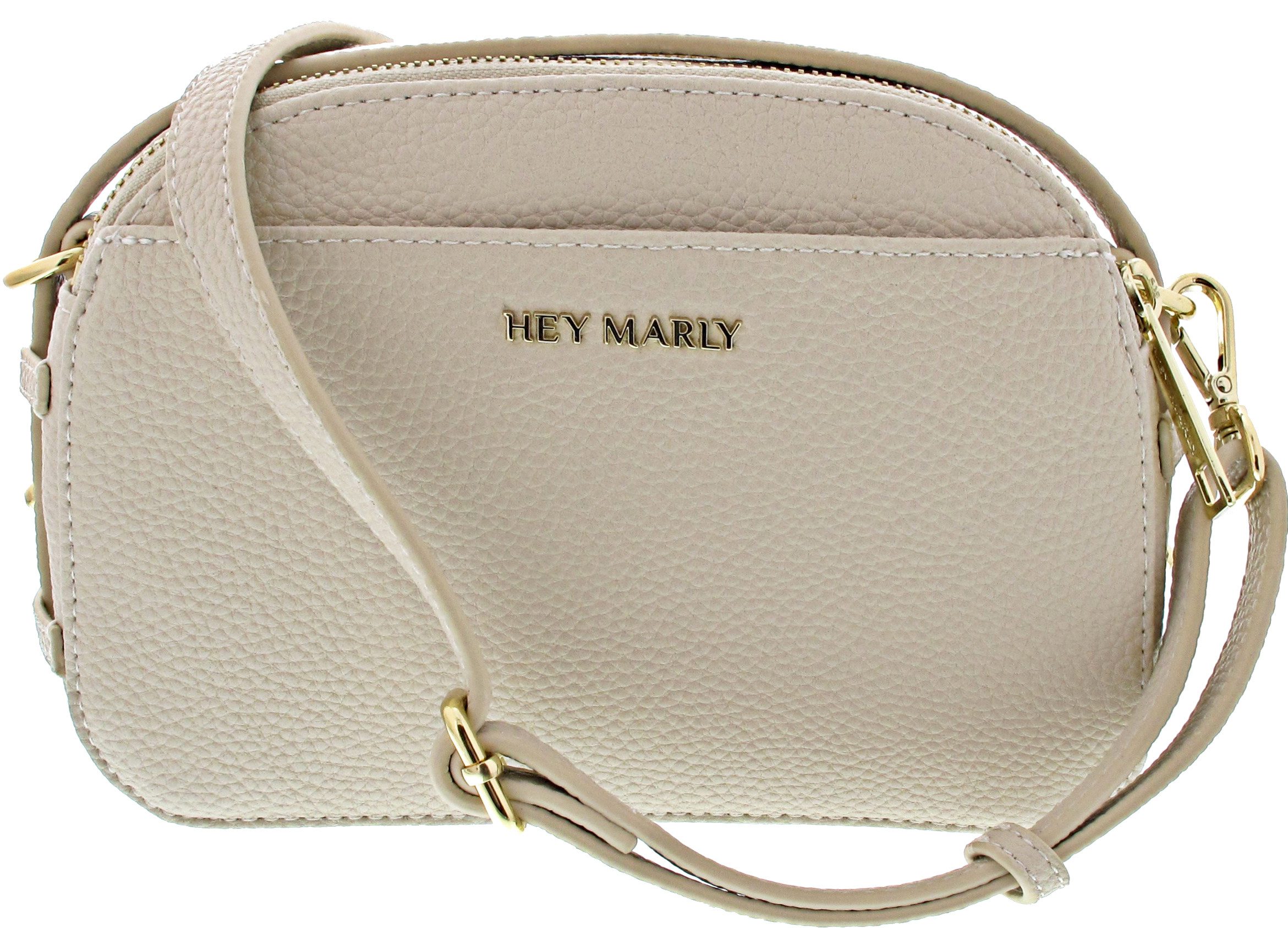 Hey Marly Style Mate S - Maße: Breite ca. 20 cm, Höhe ca. 14 cm, Tiefe ca. 6,5 cm - Tasche hat zwei Hauptfächer, die mit Reißverschluss geschlossen werden - davon ist ein Fach mit drei Kartensteckplätzen, sowie einem kleinen Zipperfach - ein kurzer Tragegriff, abnehmbar - ein langer, schmaler Trage-/Schultergurt, abnehmbar und in der Длина verstellbar - nachhaltig - Steckfächer, jeweils eins auf Vor- und Rückseite - handliche, standfeste Umhängetasche aus hochwertigem Obermaterial mit authentisch genarbter Leder-Prägung