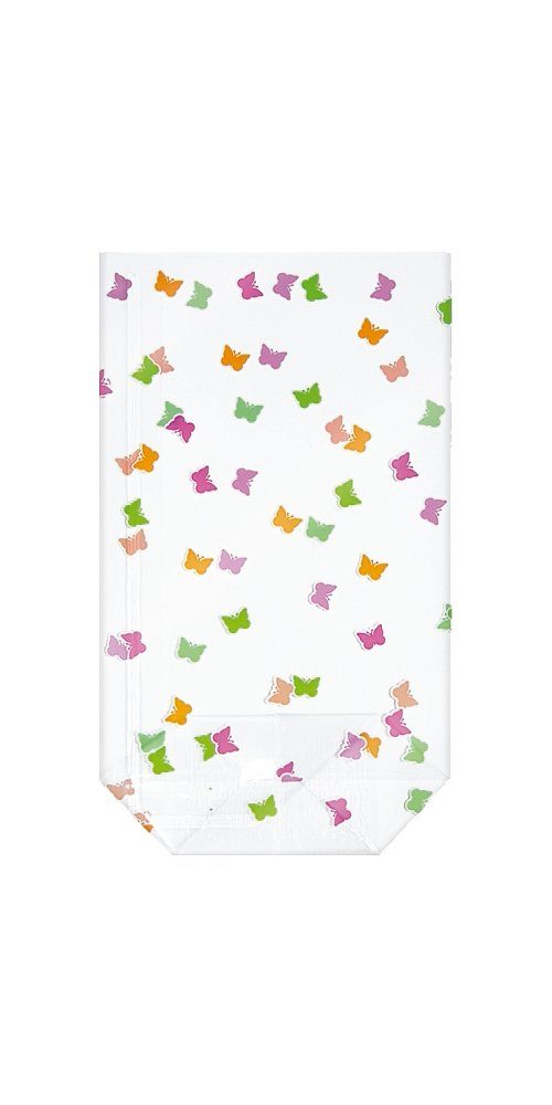 Schicke Klarsichtbeutel 'bunte Schmetterlinge' zum Verpacken kleiner Geschenke und Aufmerksamkeiten. Da die Klarsichtbeutel lebensmittelecht sind eigens sich perfekt zum Verpacken von Plätzchen, Gebäck oder Pralinen.