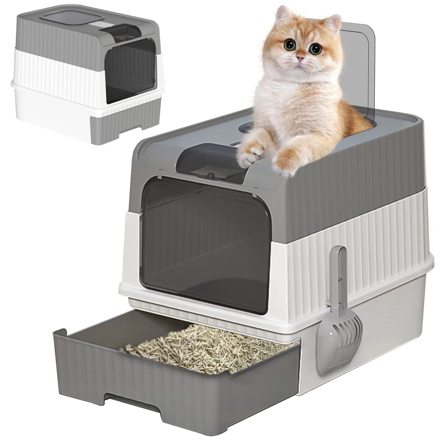Zwei-in-Eins-Design Diese große Katzentoilette bietet ausreichend Platz für Katzen bis zu 15 kg. Sie ist in geschlossener und halbgeschlossener Ausführung erhältlich und passt sich so unterschiedlichen Bedürfnissen an. Sie ist eine praktische und kostengünstige Lösung. Das Design mit zwei Öffnungen – einer Vordertür zum Einsteigen und einer oberen Öffnung zum Aussteigen – ermöglicht Ihrer Katze Bewegungsfreiheit.