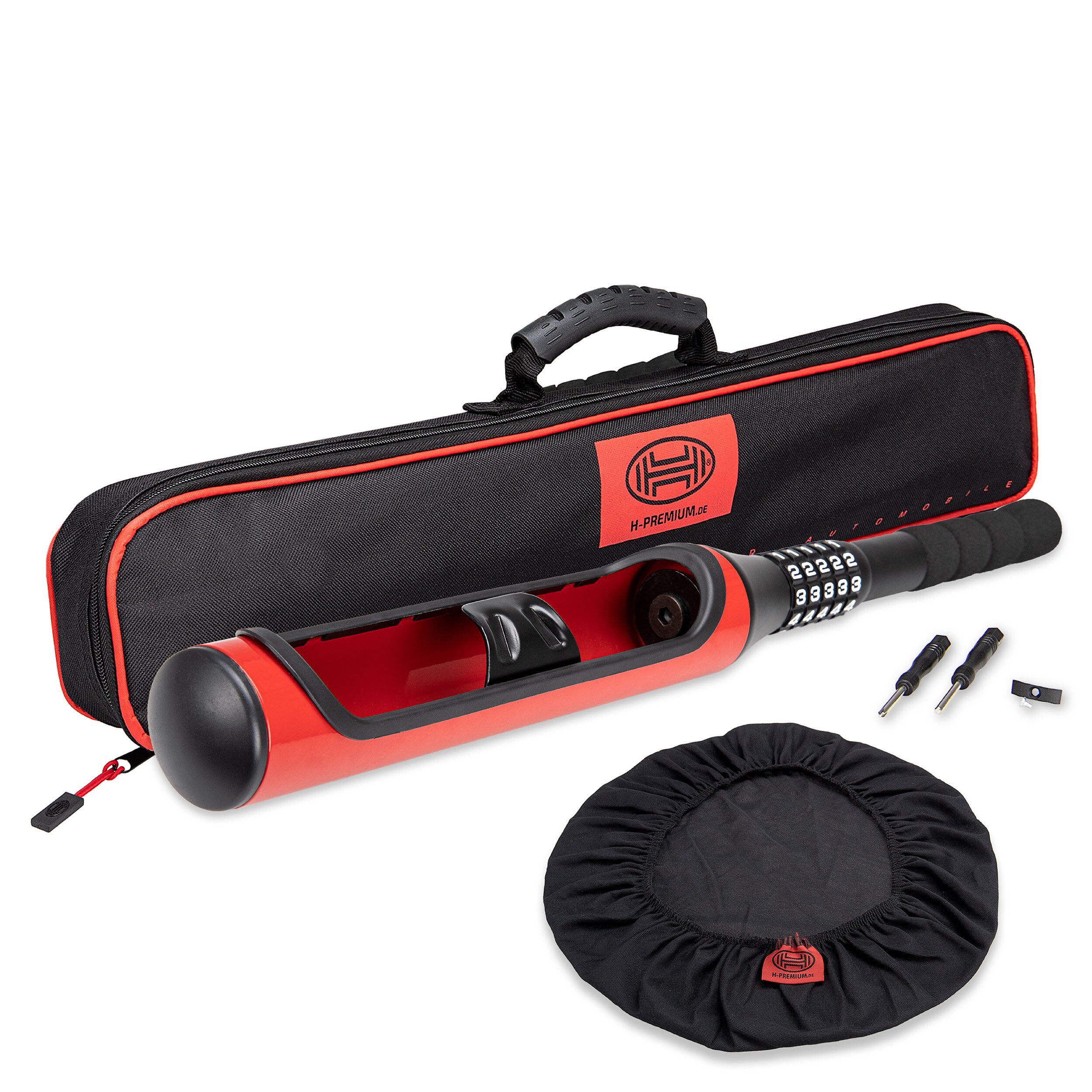 Lieferumfang | 1 Lenkradsperre 1 Tasche 1 Schutzabdeckung |