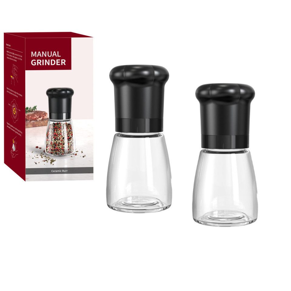 Zweiteiliges Gewürzmühlen-Set, ausgestattet mit einem haltbaren Keramikmahlwerk, die Mahlstärke kann von fein bis grob eingestellt werden und frische Zutaten können schnell gemahlen werden.