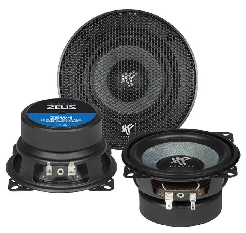 In Anlehnung an die hochwertigen ZX Lautsprecher stellt HiFonics jetzt als preislich attraktive Ergänzungsserie die ZEUS ZS Modelle mit Stahlkörben vor. Diese verfügen ebenfalls über die aufwendig aufgebaute Honeycomb Sandwich-Membran aus einem speziellen Glasfiber-Papier-Verbundmix, welche klanglich optimale Resultate liefert. Все Lautsprecher sind mit Magnet-Protektoren ausgestattet und werden paarweise mit Gitterset geliefert und jeweils als 1-Wege (ZSW) oder Koaxial-Lautsprecher (ZS) in den Größen 10, 13 und 16,5 cm erhältlich. Oft sind Koaxial-Lautsprecher speziell im Hochton einfach aufgebaut, nicht so die ZEUS ZS Lautsprecher: sie verfügen bereits über einen sehr fein klingenden 20 mm Gewebe-Neodym-Hochtöner. Zusammen mit den Einzelkomponenten der ZX-Baureihe bietet HiFonics somit einen universellen Baukasten, aus dem man sich sein Wunsch-System selbst einfach zusammenstellen kann.