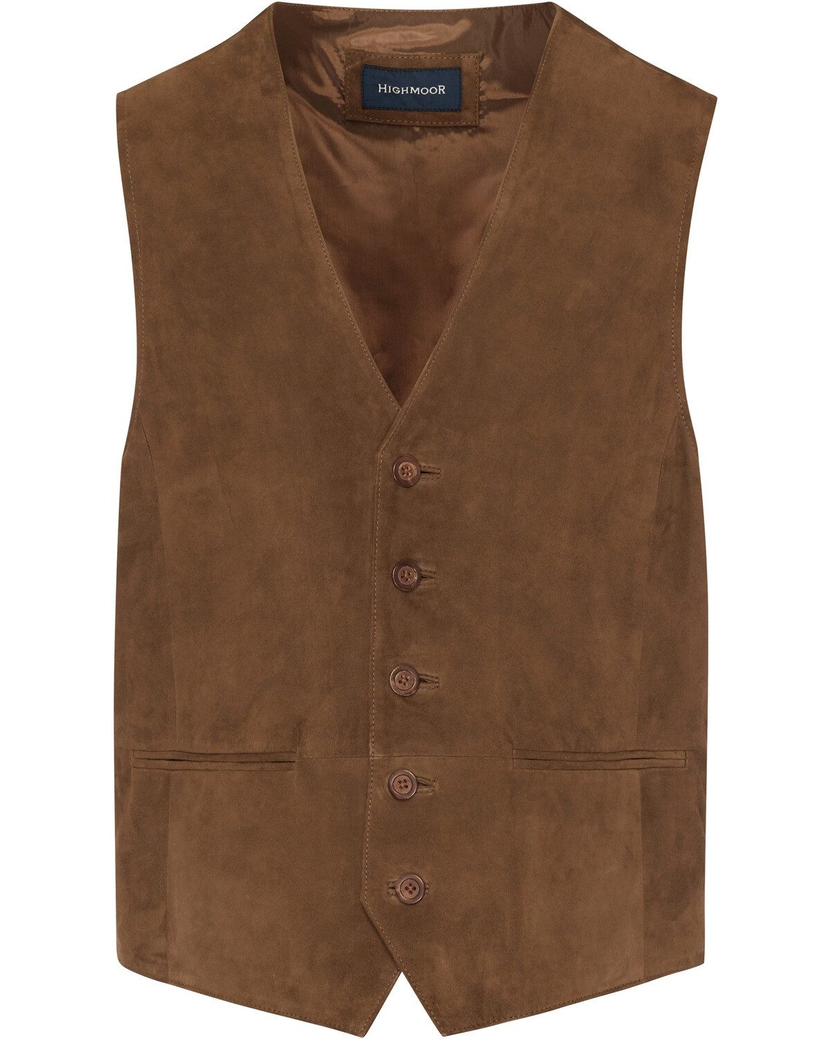 Die klassische Herren Weste von HIGHMOOR vereint zeitloses Design mit hochwertiger Verarbeitung. Gefertigt aus feinem, pflanzlich gegerbtem Ziegenveloursleder, bietet sie nicht nur einen eleganten Look, sondern auch ein angenehmes Tragegefühl. Die sanfte Textur des Leders sorgt für eine luxuriöse Ausstrahlung, die sich sowohl für formelle Anlässe als auch für legere Outfits eignet. Besondere Details wie die stilvollen Paspeltaschen und der V-Ausschnitt verleihen der Weste eine raffinierte Note. Der durchdachte Schnitt sorgt für eine optimale Passform, während das Rückenteil mit einem verstellbaren Riegel und Schließe zusätzliche Flexibilität bietet. So lässt sich die Weste mühelos an die individuellen Körpermaße anpassen und garantiert einen komfortablen Sitz. Ideal kombinierbar mit Hemden oder Pullovern, wird diese Weste schnell zum Lieblingsstück in der Garderobe. Ob im Büro, beim Dinner oder in der Freizeit – die Herren Weste von HIGHMOOR setzt stilvolle Akzente und rundet jedes Outfit perfekt ab. Ein Must-have für modebewusste Männer, die Wert auf Qualität und Design legen. Oberstoff: 100% Leder; Futter: 100% Polyester. Dieser Artikel enthält nichttextile Teile tierischen Ursprungs.