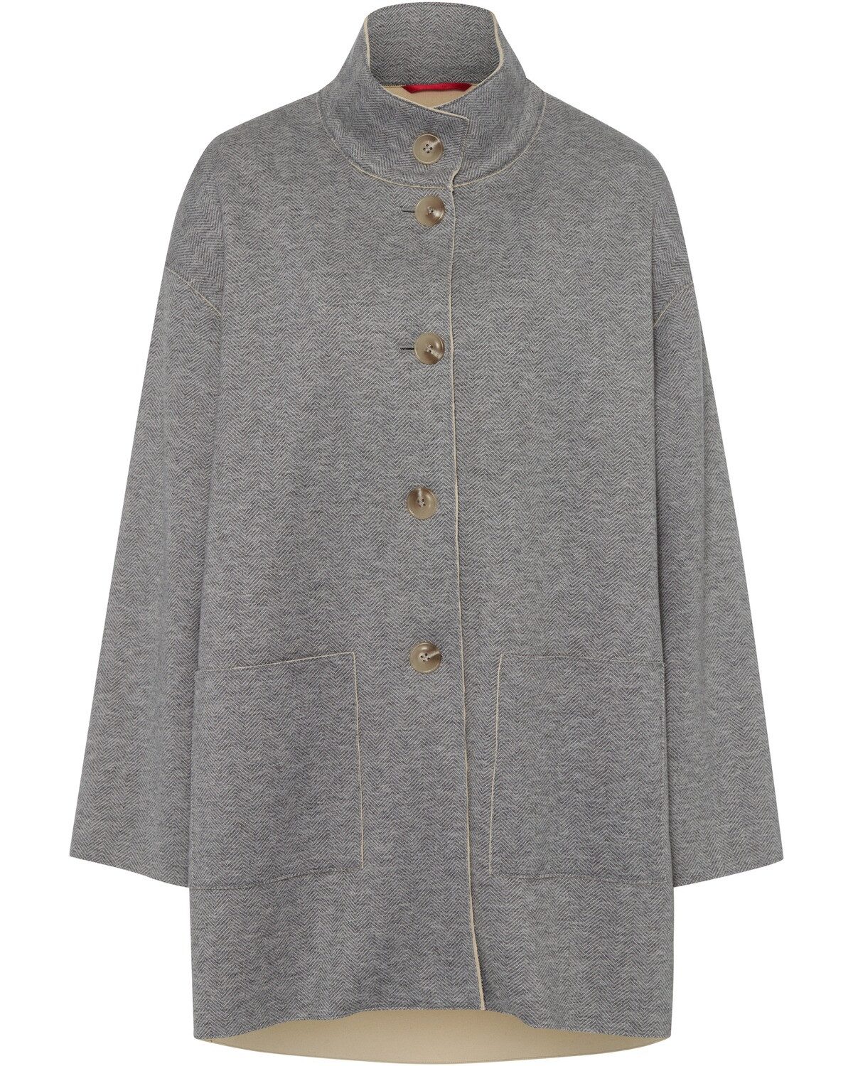 Der leichte Highmoor Kurzmantel verbindet zeitlose Eleganz mit innovativem Material. Der locker geschnittene Mantel ist aus einem innovativen Doubleface-Material gefertigt, das nicht nur für seinen Tragekomfort, sondern auch für seine optische Attraktivität bekannt ist. Die Fischgratstruktur auf der Außenseite verleiht dem Mantel eine klassische Note, während die beige Kontrastfarbe auf der Innenseite für eine frische und moderne Optik sorgt. Dieser Doubleface-Mantel ist eine ideale Wahl für Damen, die auf der Suche nach einem vielseitigen Kleidungsstück sind, das sowohl für den Alltag als auch für besondere Anlässe geeignet ist.