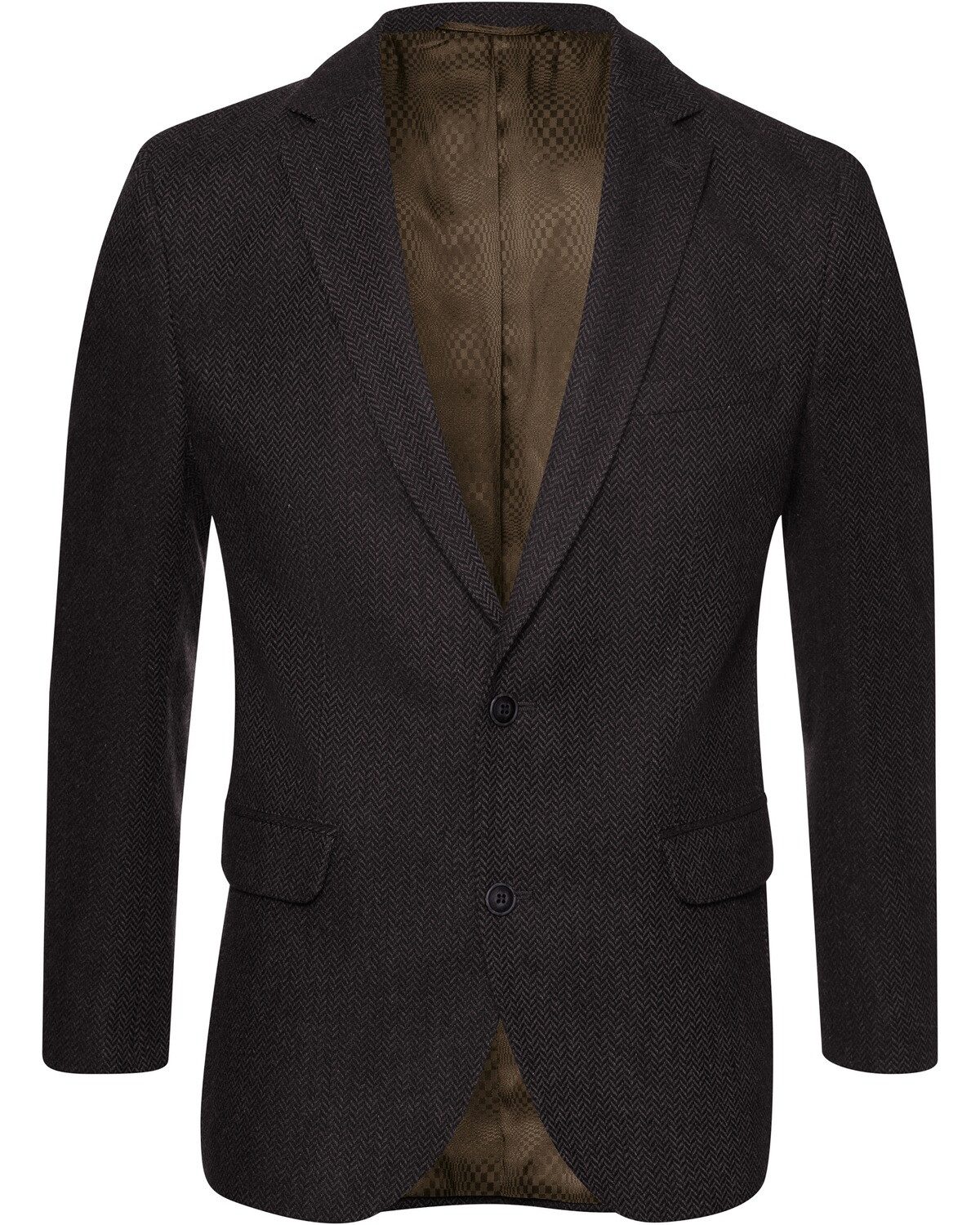 Das Herren Fischgrat-Sakko von Highmoor besticht durch eine zeitlose Ausstrahlung und qualitativ hochwertige Verarbeitung. Der Materialmix mit hohem Wollanteil sorgt für einen angenehmen Tragekomfort und eine natürliche Wärmeisolierung, ideal für kühle Tage. Die charakteristische Fischgratstruktur verleiht dem Sakko eine feine Textur und einen edlen Look, der sowohl im beruflichen Alltag als auch bei besonderen Anlässen überzeugt. Der Reverskragen unterstreicht die traditionelle Note dieses Sakkos, während die praktischen Pattentaschen und die elegante Brustleistentasche ausreichend Platz für kleine Alltagsgegenstände bieten und zugleich das Gesamtbild abrunden. Die Seitenschlitze garantieren Bewegungsfreiheit und sorgen für eine optimale Passform. Geschlossen wird das Sakko mit einer 2-Knopf-Frontleiste, die eine klassische Linienführung schafft. Die Regular Fit Passform bietet eine ausgezeichnete Balance zwischen Bequemlichkeit und einer stilvollen, konturierten Silhouette. Das Innenfutter rundet das hochwertige Design ab und sorgt für zusätzlichen Komfort. Das Fischgrat-Sakko ist ein vielseitiger Begleiter und sorgt bei jeder Gelegenheit für einen souveränen und stilvollen Auftritt. Oberstoff: 65% Wolle, 30% Polyester, 5% Sonstige Fasern; Futter: 100% Polyester