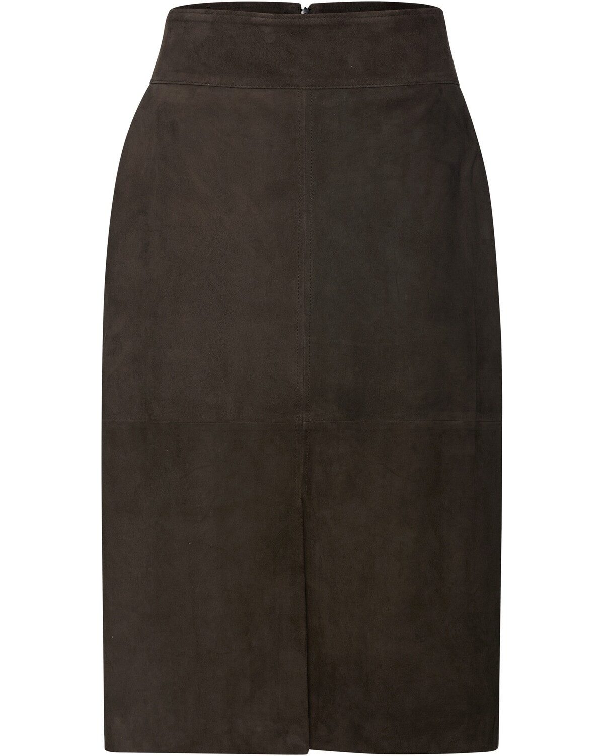 Der Rock aus pflanzlich gegerbtem Ziegenveloursleder verkörpert den eleganten British Country Stil und ist eine stilvolle Ergänzung für jede Garderobe. Mit seinem breiten Bund bietet er nicht nur einen bequemen Sitz, sondern betont zudem die Taille und sorgt für eine feminine Silhouette. Der hochwertige Velourslederstoff verleiht dem Rock eine luxuriöse Haptik und eine natürliche Ausstrahlung, die perfekt zu den ländlichen Landschaften passt. Praktische Details machen diesen Rock besonders funktional. Die seitlichen Schubtaschen bieten ausreichend Platz für kleine Essentials, während der verdeckte Schlitz in der vorderen Mitte für Bewegungsfreiheit sorgt, ohne die elegante Optik zu beeinträchtigen. Der Reißverschluss in der hinteren Mitte ermöglicht ein einfaches An- und Ausziehen und fügt sich nahtlos in das Design ein. Dieser Rock ist vielseitig kombinierbar und eignet sich sowohl für entspannte Ausflüge auf dem Land als auch für elegante Anlässe in der Stadt. Ob mit einem klassischen Hemd oder einem lässigen Pullover kombiniert, er strahlt stets einen charmanten, britischen Flair aus. Mit diesem Stück wird jeder Look zu einem Statement für Stil und Qualität. Oberstoff: 100% Leder; Futter: 100% Polyester