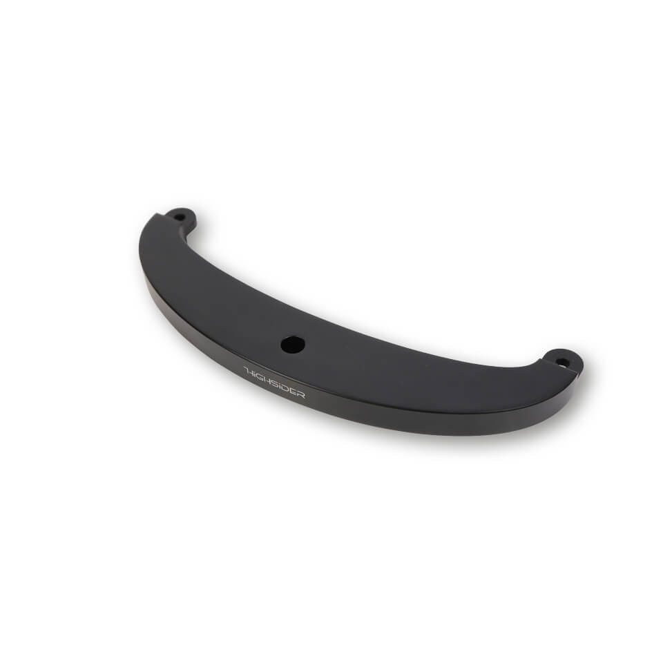 CNC-gefräster Halter aus Aluminium zur Montage von Scheinwerfern mit unterer Befestigung. Bohrung zur Befestigung des Scheinwerfers max. M 10. Passend für Gabeln mit einer Breite von 180 mm bis 220 mm (gemessen von Gabelstandrohrmitte bis Gabelstandrohrmitte). Die exakte Breite wird über eine Veränderung des Anbauwinkels am Halter mittels der zusätzlich benötigten Standrohrschellen eingestellt.
