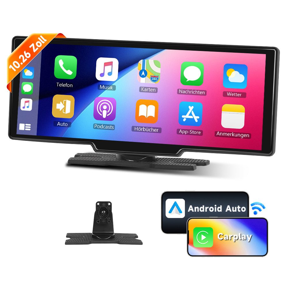 ►Es kann mit Wireless Carplay oder Android Auto verbunden werden, und macht die Navigation und intelligente Stimme bequemer und intelligenter.