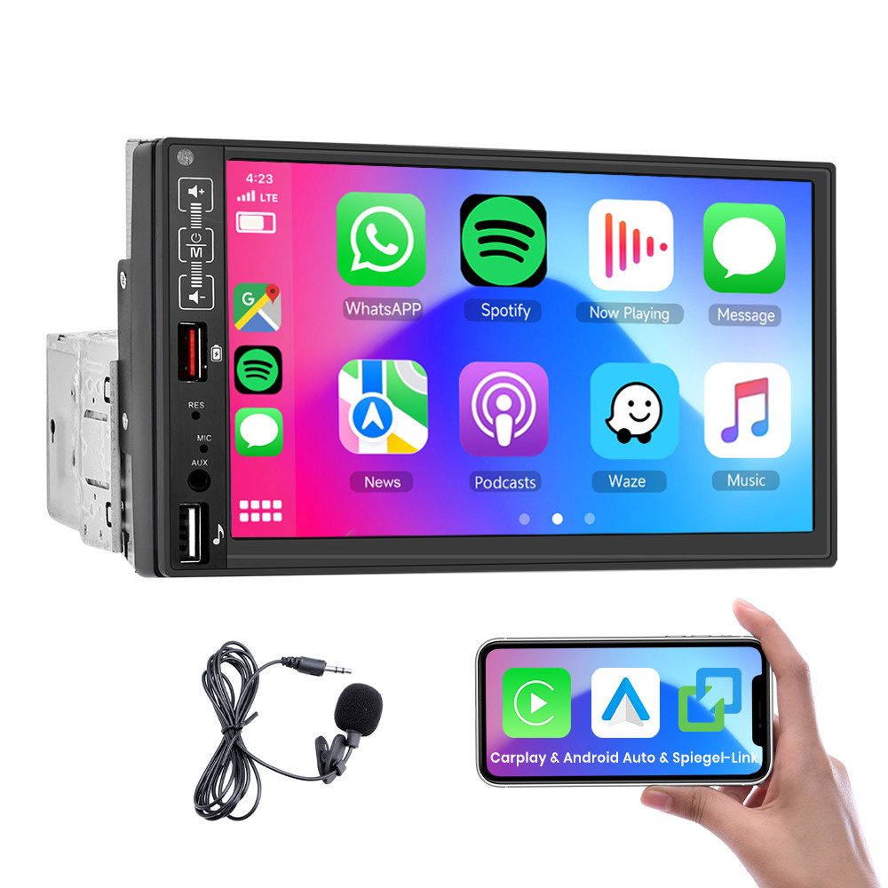 ● Wireless Carplay: Sie können eine kabelgebundene oder drahtlose Verbindung zu Carplay wählen, eine Verbindung zu einem Apple-Mobiltelefon herstellen, auf das Adressbuch des Mobiltelefons, Mails, Benachrichtigungen, Kartennavigation, Musik, Videos und andere Informationen zugreifen und Sprachsteuerung realisieren.