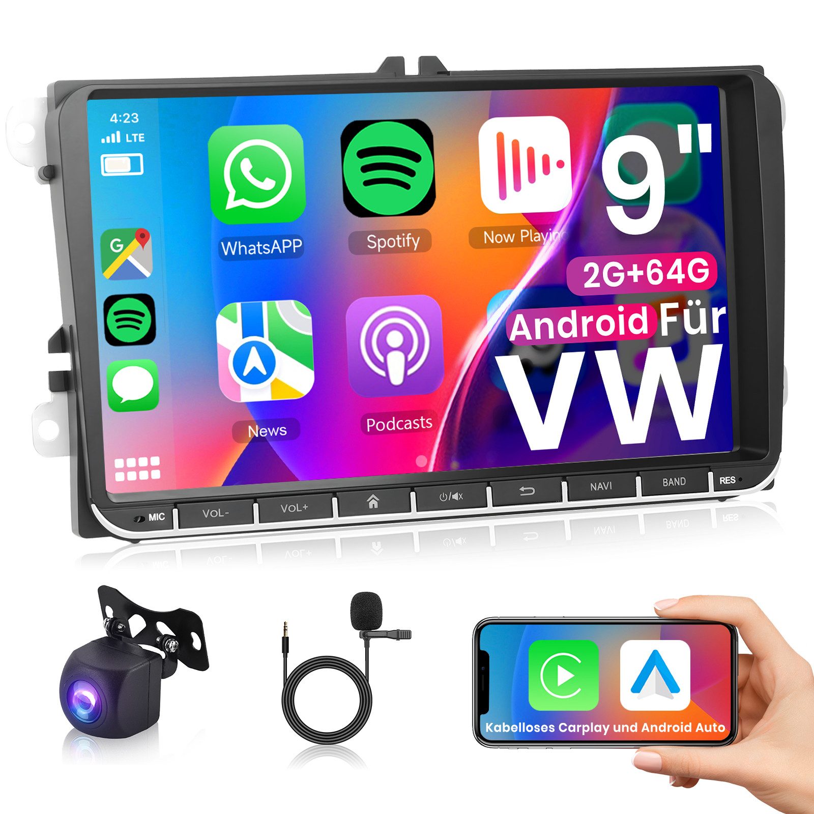 ●Wireless Carplay und Wireless Auto: Verwenden Sie Ihr iPhone oder Android-Telefon drahtlos mit dem Gerät, und steuern Sie die Apps Ihres Telefons. Sie können Anrufe tätigen, Nachrichten senden, Musik abspielen, navigieren und vieles mehr - einfach durch Ihre Stimme oder Berührung.