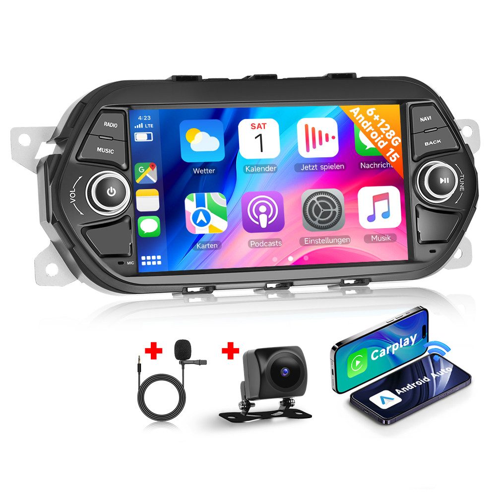 ●Wireless Carplay und Auto: Verwenden Sie Ihr iPhone oder Android-Telefon drahtlos mit dem Gerät und steuern Sie die Apps Ihres Telefons. Sie können Anrufe tätigen, Nachrichten senden, Musik abspielen, navigieren und vieles mehr – nur mit Ihrer Stimme oder per Touch.