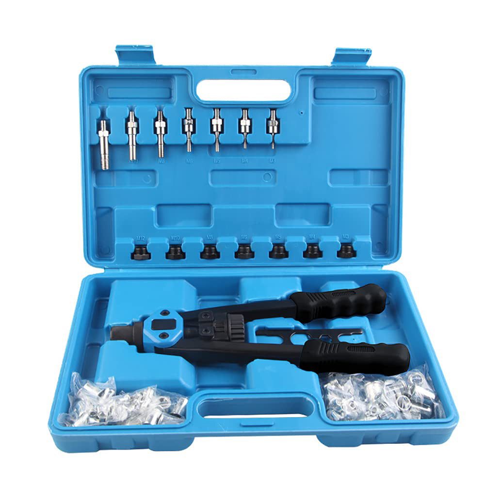 1. Nietpistolen-Set: Nietmutternzange, 110 Nietmuttern, M3-M4-M5-M6-M8-M10-M12-Dorn, Schnellwechselkopf für einfachen manuellen Austausch von Dornen und Nasenstücken