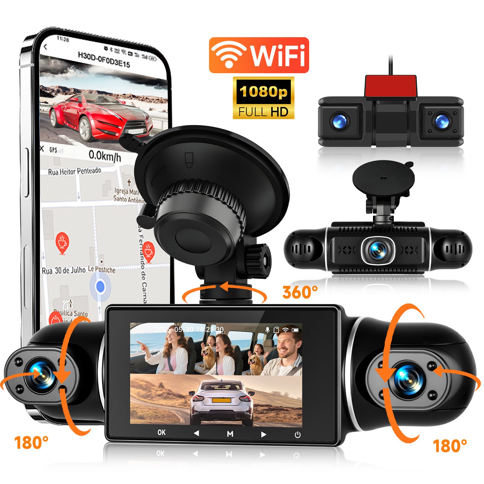 6) Besondere Merkmale: 1080P, Fünf Kameras, Schleifenaufzeichnung, Schwerkraftsensor, Schwarz-Weiß-Nachtsicht, 360-Grad-Schutz, Wi-Fi & App, Belichtungskorrektur