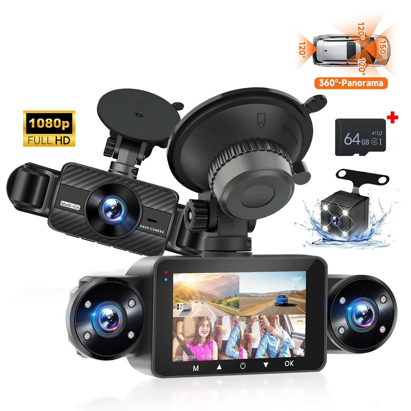 2. Vier Kameras. Ausgestattet mit vier Kameras, können die vorderen 3 Linsen den Aufnahmewinkel einstellen, so dass Sie mehr Details aufnehmen können, wie Sie möchten. Es kann leicht 360 Winkel abdecken, um sicherzustellen, dass es keinen toten Winkel um das Auto herum gibt. Sie können ein Objektiv verwenden, um das Innere des Fahrzeugs zu erfassen.