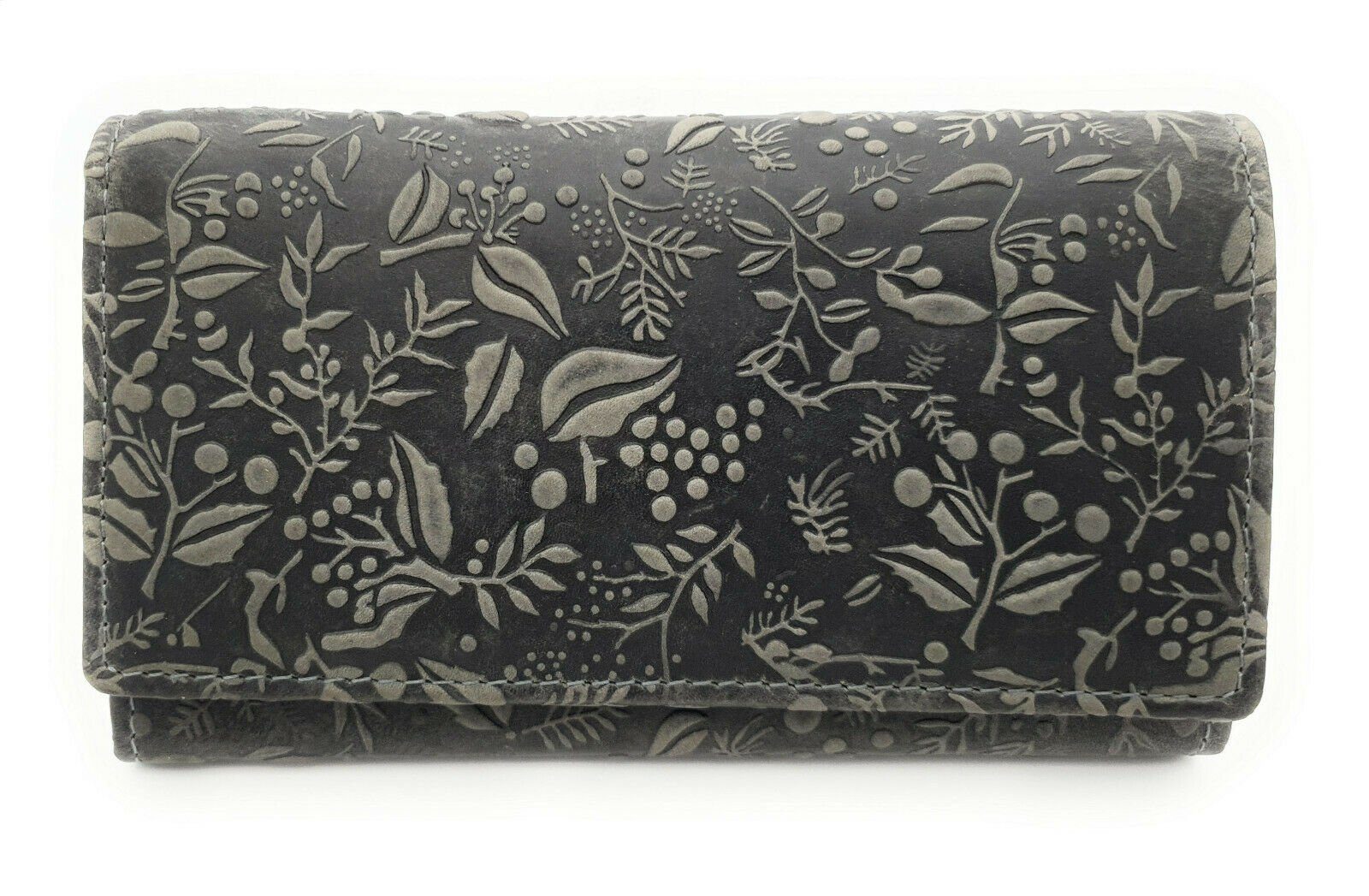 Markenqualität von Hill Burry. Echt Leder Damen Geldbeutel im Langformat mit zeitlos eleganter floraler Prägung.