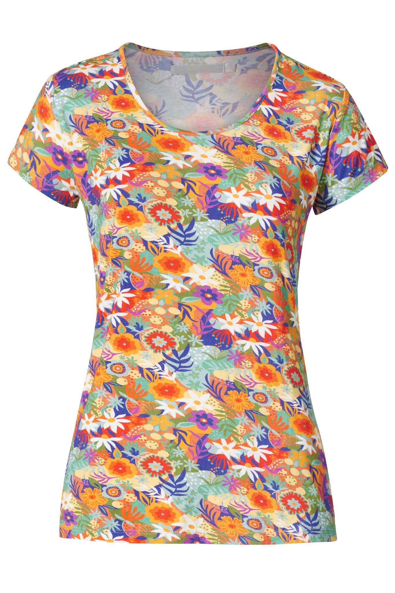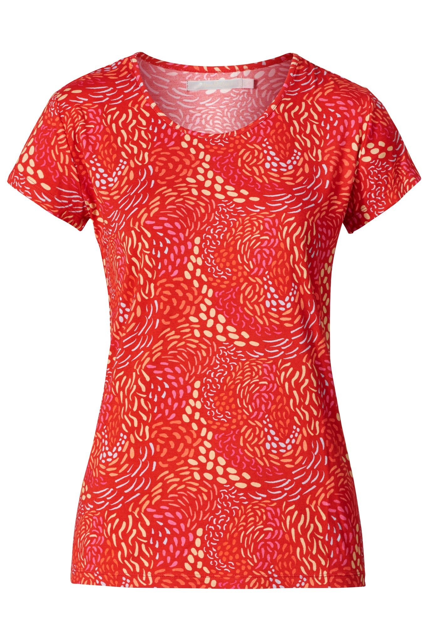 LÄSSIGES DESIGN - Das Sommer Damen Shirt überzeugt mit seinem lebendigen, grafischen Muster und einem klassischen Rundhalsausschnitt für einen stilvollen, sommerlichen Look.