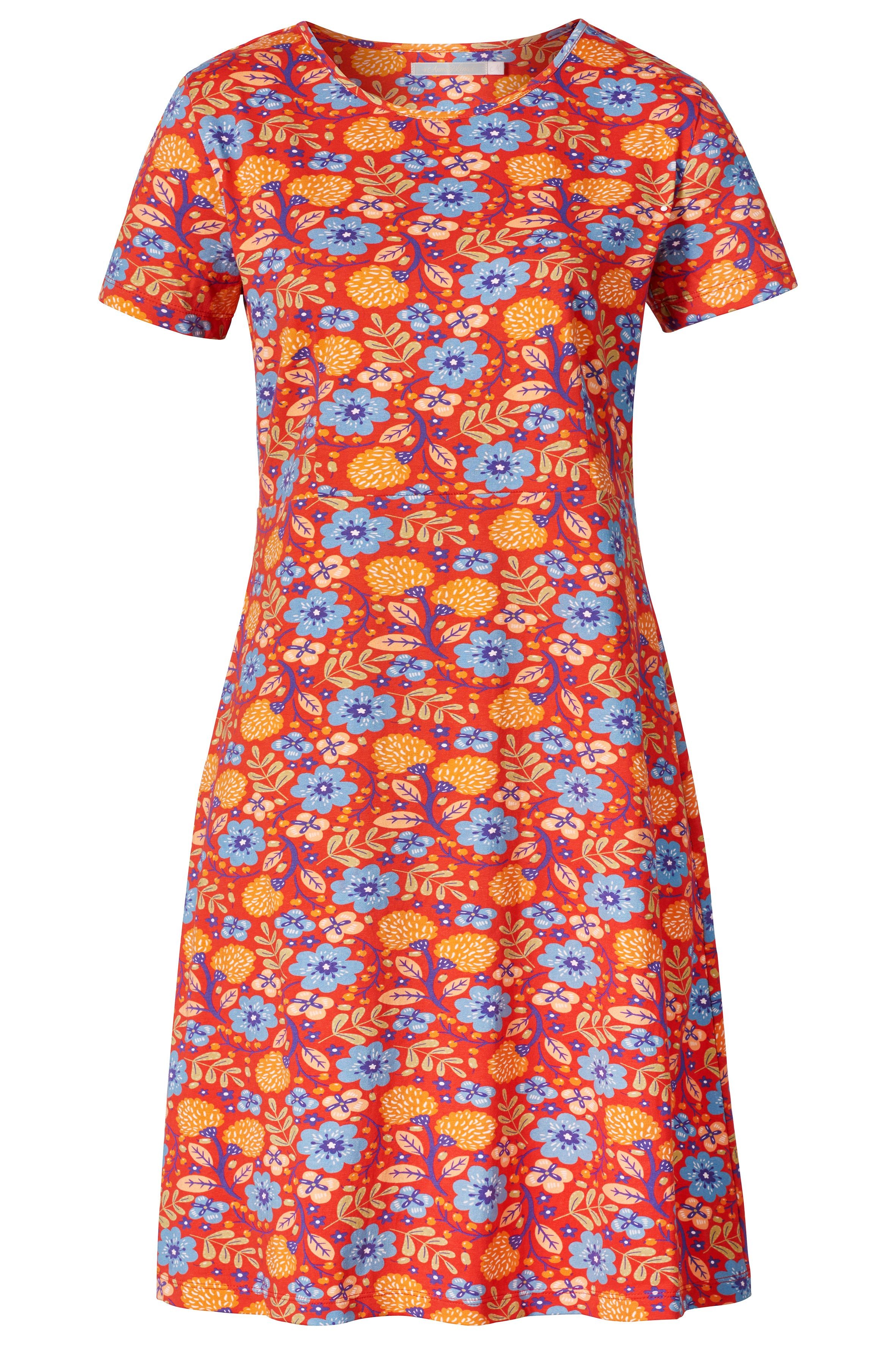 Himalaya Clothing Sommerkleid Kleid Damen mit lebhaftem Blumenmuster - Sommerkleid aus Bio-Baumwolle Bequemes Blumenkleid in schmeichelhafter A-Linie