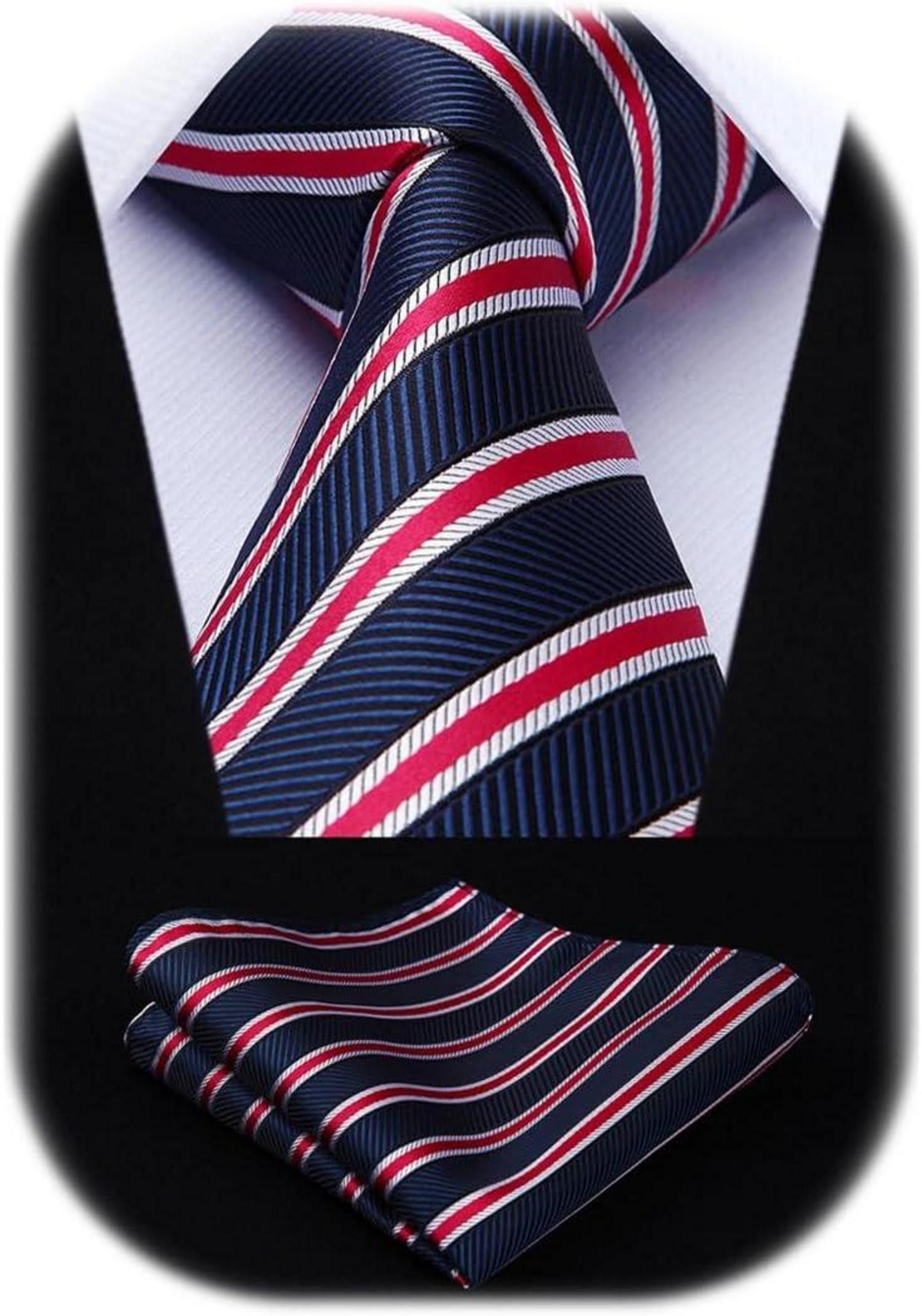 Das HISDERN Mens Navy Blue and Red Striped Tie Extra Long Wedding Tie & Pocket Square Formal Necktie and Handkerchief Set ist die ideale Ergänzung zu Ihrer Garderobe. Dieses Set besteht aus einer stilvollen Krawatte und einem passenden Einstecktuch und eignet sich für verschiedene Anlässe, sowohl formell als auch lässig.