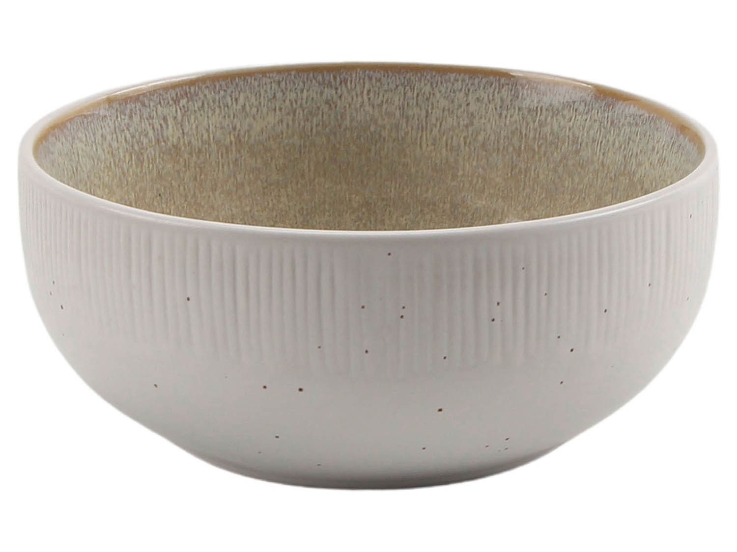 Die Müslischale TIZIANA in Beige zeichnet sich durch eine linienförmige Reliefprägung und eine glasierte Oberfläche aus Steingut aus. Mit einem Durchmesser von 13,7 cm und einer Höhe von 7 cm ist sie ideal für Frühstück oder Snacks geeignet. Die Außenseite ist in Weiß gehalten, was einen stilvollen Kontrast zur beigen Innenseite bietet. Die Schale ist spülmaschinen- und mikrowellengeeignet, was sie besonders praktisch macht. Ein eleganter und funktionaler Begleiter für den täglichen Gebrauch.