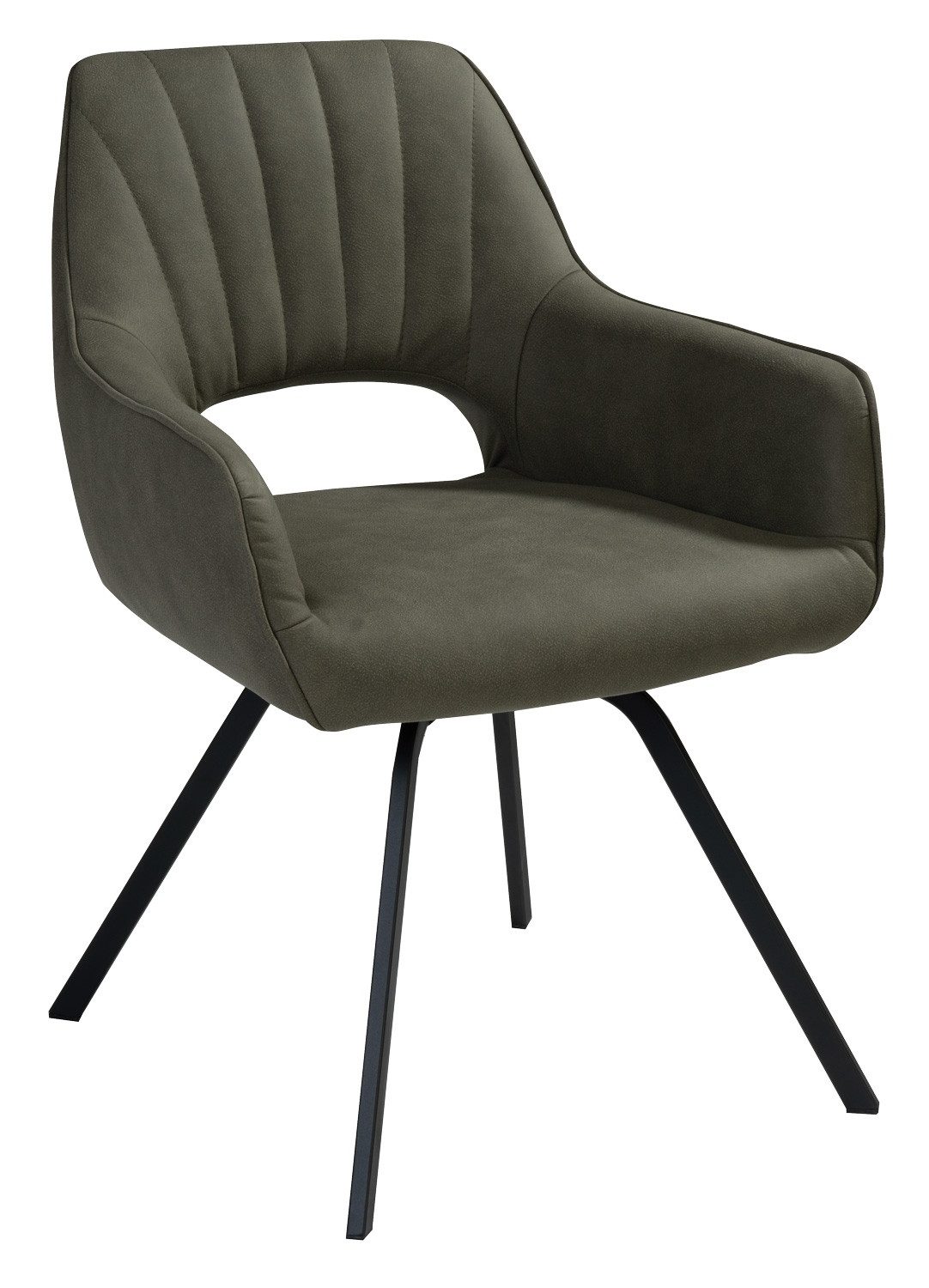 Der Polsterstuhl lässt sich um 180 Grad drehen. Mit der automatischen Rückholfunktion wird die Sitzschale nach dem Drehen wieder in die ursprüngliche Sitzposition zurück geführt.