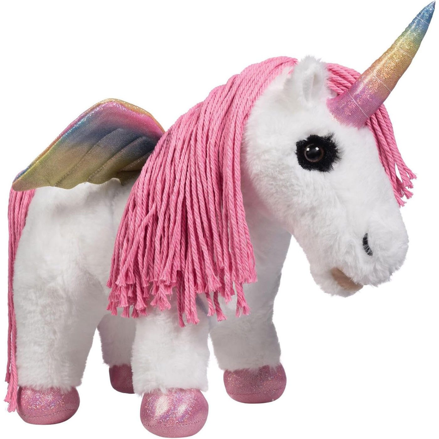 Die Einhorn-Варианты des beliebten Cuddle Ponys präsentiert sich mit schimmernden Horn und Flügeln im pastelligen Farbverlauf.