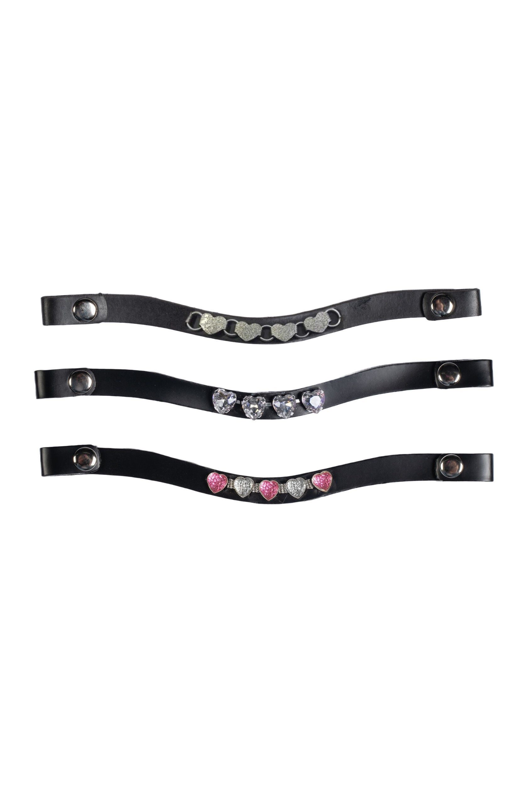 Mit den Stirnriemen für die Trense Hobby Horsing, Art. Nr. 13870, bekommt das geliebte Hobby Horse seinen individuellen Look. Dank praktischem Druckverschluss lassen sie sich leicht anbringen, und das strapazierfähige Kunstleder sorgt für eine hochwertige Optik. Die Stirnbänder sind mit Strasssteinen, Textilbändern oder Applikationen verziert und teils geschwungen.
