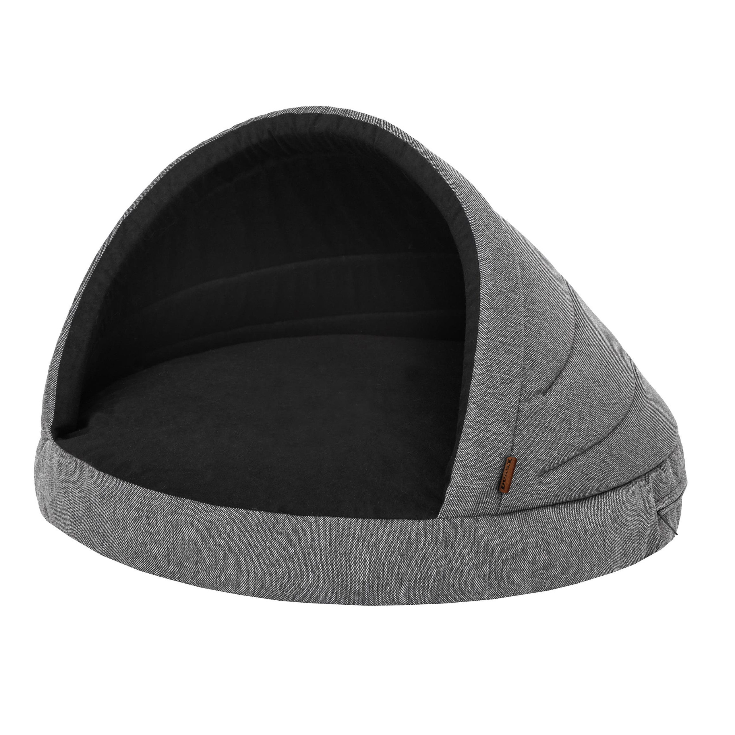 Die Hundehütte Cave ist einfach zu reinigen – in den meisten Fällen reicht ein feuchtes Tuch aus, um Flecken zu entfernen. Das Dach ist mit einem praktischen Reißverschluss ausgestattet, der die Reinigung erleichtert und gleichzeitig das Ein- und Aussetzen Ihres Haustieres vereinfacht. Das Produkt ist bis zu einem gewissen Grad wasserdicht, jedoch nur für den Innenbereich geeignet und sollte nicht im Freien verwendet werden. Dank ihres leichten Gewichts lässt sich die Hundehütte mühelos in eine kompakte Würfelform falten, was eine einfache Lagerung und einen praktischen Transport ermöglicht.