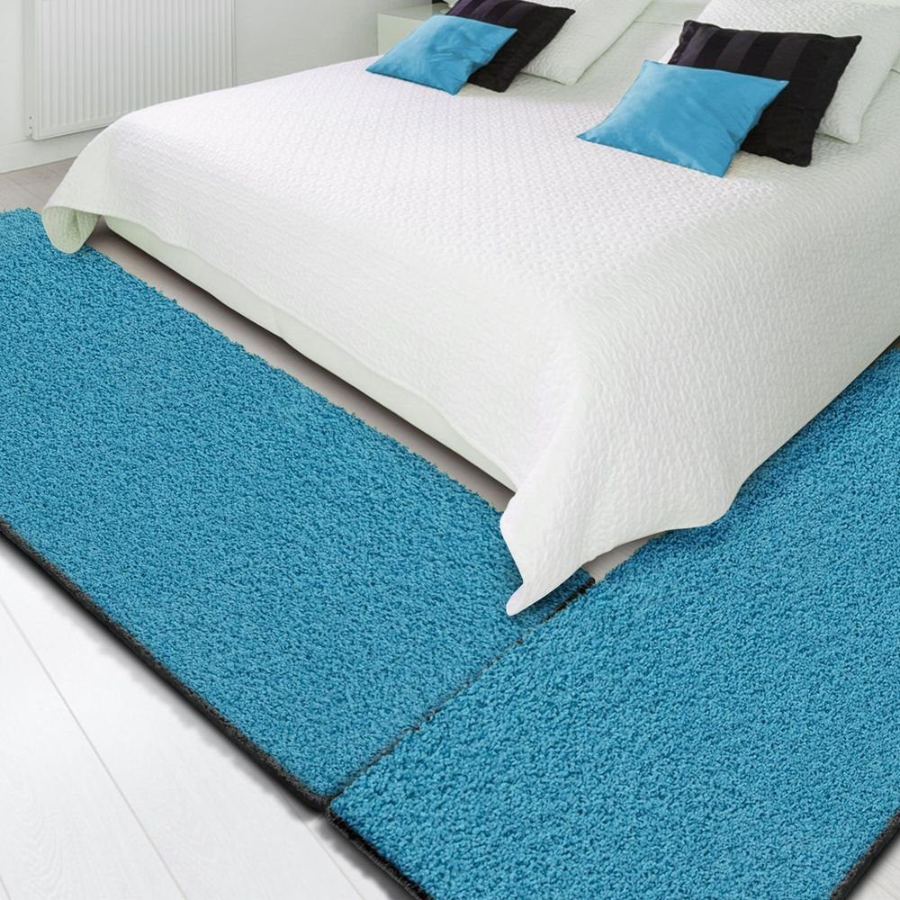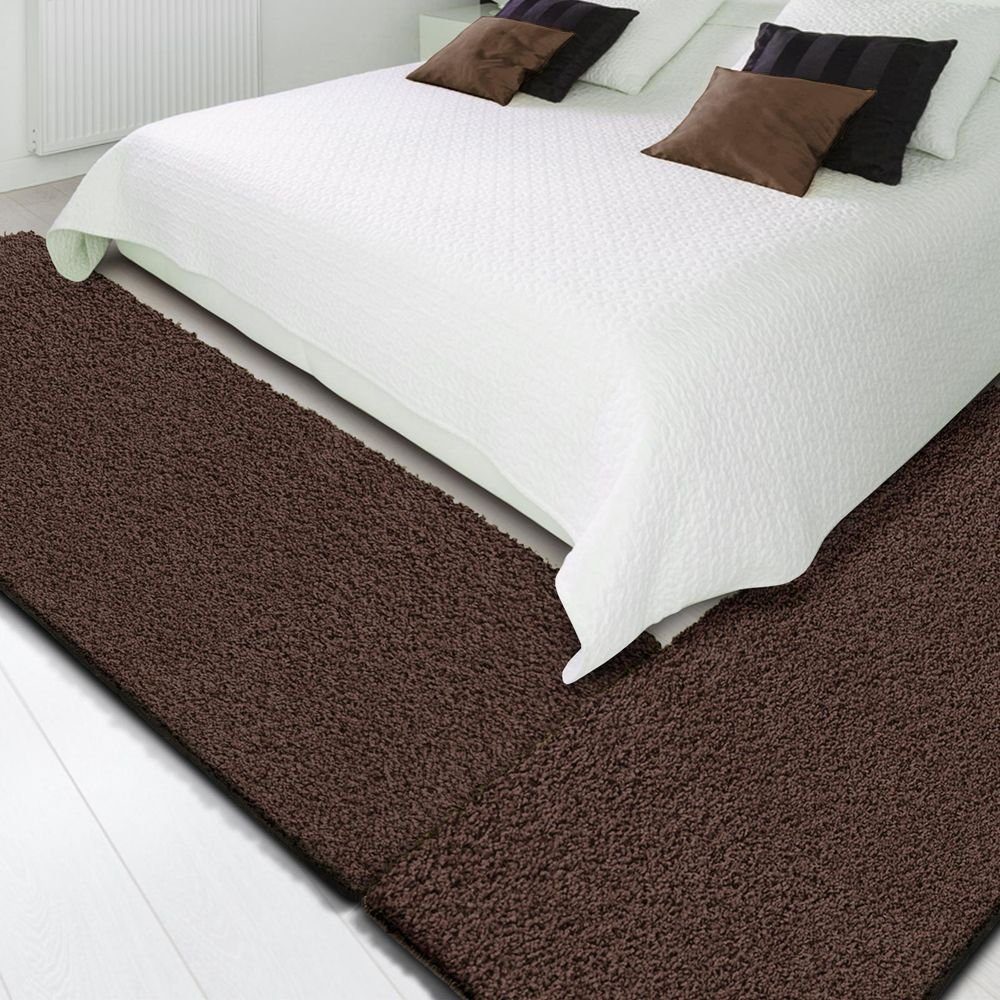 Die Shaggy-Bettumrandung besteht aus einem dreiteiligen Teppichläufer-Set. Während die beiden etwas kürzeren Teppichbrücken ihren Platz zur linken und zur rechten Seite des Bettes finden, rundet der lange Läufer das Gesamtbild an der Stirnseite perfekt ab.