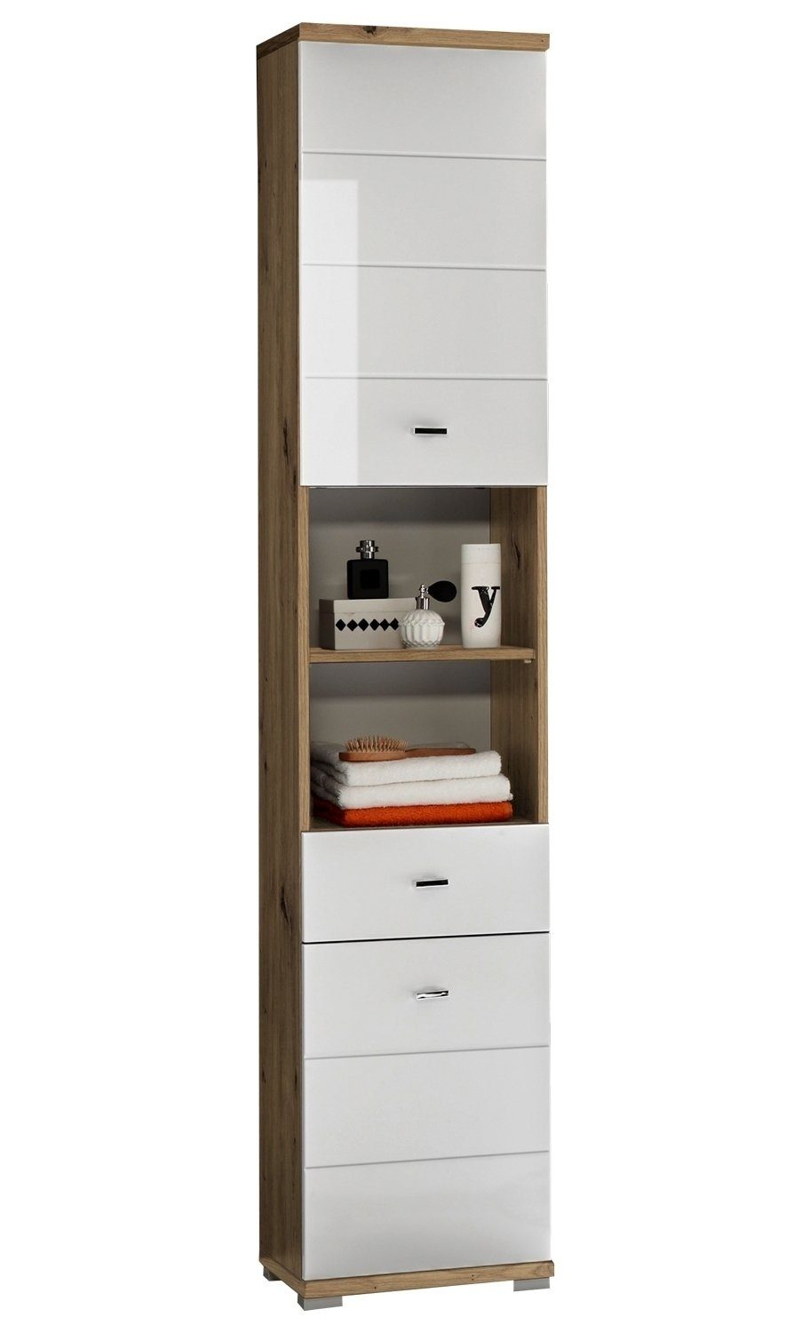 Lieferumfang | 1 Hochschrank mit 2 Türen, 2 Ablageflächen und 3 Einlegeböden |