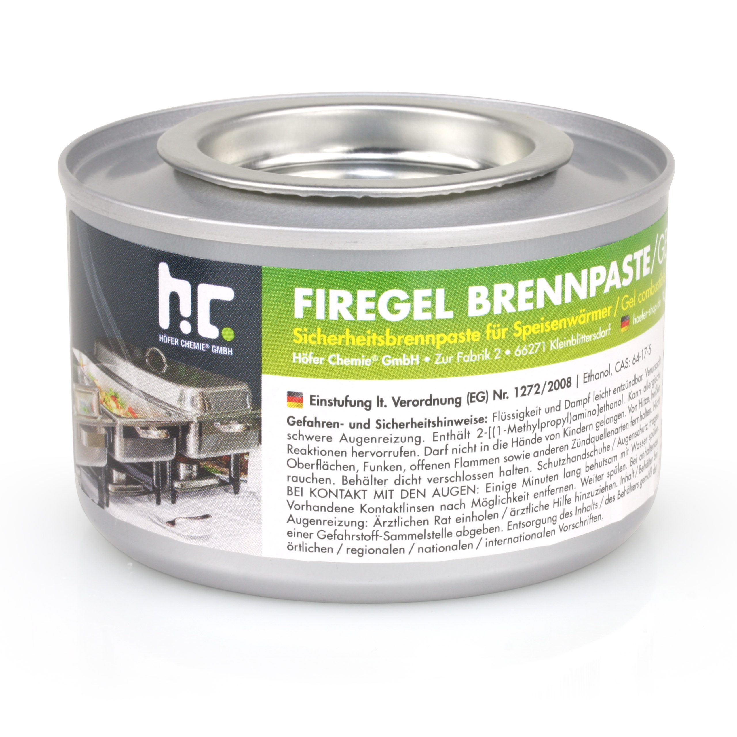 Ob beim Chafing-Dish in der Gastronomie oder zu Hause zum Warmhalten von Speisen auf Buffets: Unsere Brennpaste ist die sichere, saubere und einfache Lösung für das zuverlässige Warmbleiben von Speisen über mehrere Stunden. Es handelt sich bei unserer Brennpaste um ein ungiftiges Gel auf der Basis von Bioethanol mit einem zugesetzten Verdickungsmittel. Die Brennpaste ist sofort nach Öffnen der Dose gebrauchsfertig. Die Dose lässt sich mit ihren Abmessungen von circa 85 mm im Durchmesser sowie rund 55 mm in der Höhe bequem handhaben. Das Anzünden der Brennpaste direkt in der Dose gelingt leicht und schnell. Es entwickelt sich eine heiße, jedoch nicht zu große Flamme für ein kulinarisch wie wirtschaftlich optimales Warmhalteresultat.