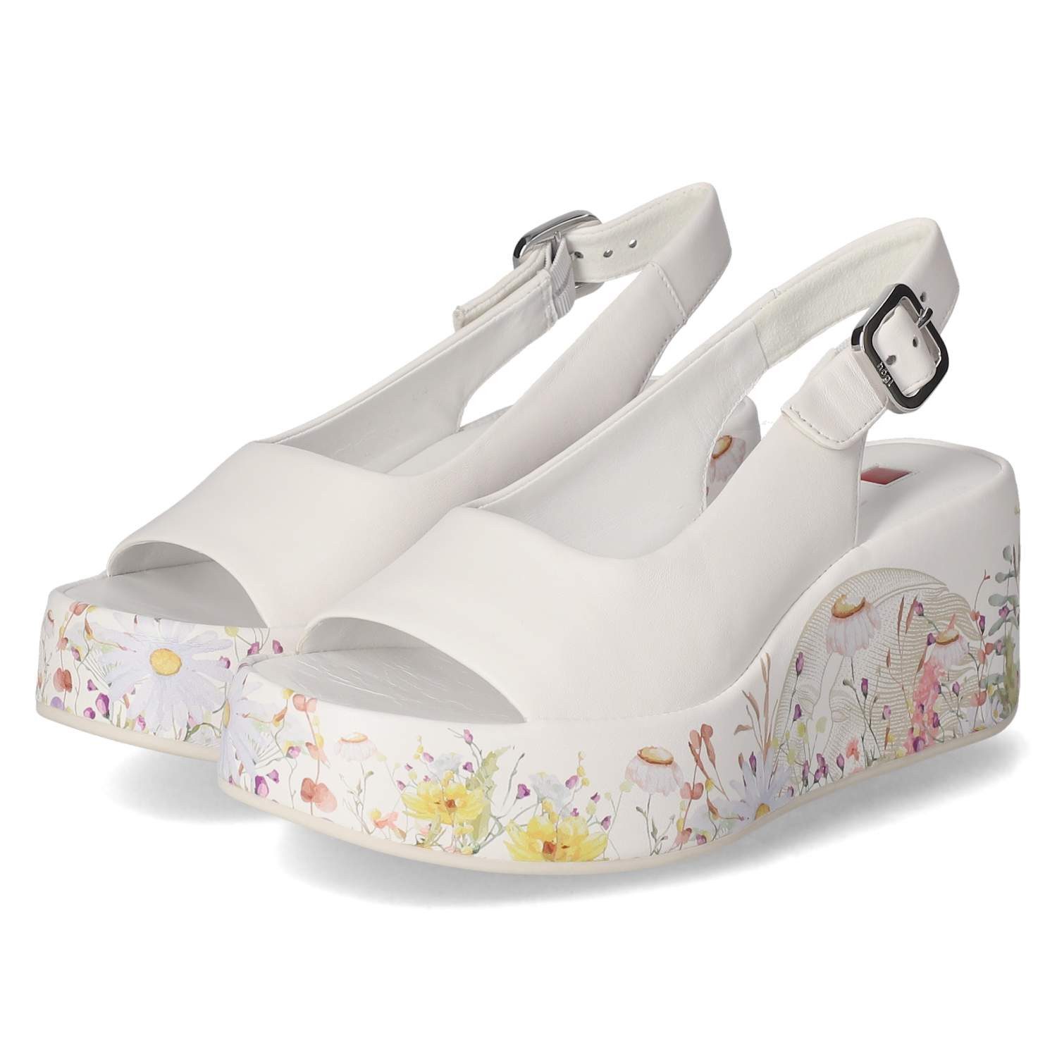 Die Högl Damen Keilsandaletten in Weiß aus hochwertigem Glattleder vereinen Eleganz und Komfort in einem stilvollen Design. Die silberfarbene Schnalle mit kleinem Elastikeinsatz sorgt für eine optimale Passform und erleichtert das An- und Ausziehen. Dezente Ziernähte verleihen dem Modell eine edle Note, während das Innenmaterial aus weichem Leder für ein angenehmes Tragegefühl sorgt. Das gepolsterte Lederfußbett bietet zusätzlichen Komfort, selbst bei längeren Tragezeiten. Die rutschhemmende Laufsohle gewährleistet sicheren Halt, während der Keilabsatz mit floralem Print als besonderer Blickfang fungiert. Diese Sandaletten lassen sich wunderbar mit sommerlichen Kleidern, leichten Hosen oder Röcken kombinieren und verleihen jedem Outfit eine feminine und stilvolle Ausstrahlung.
