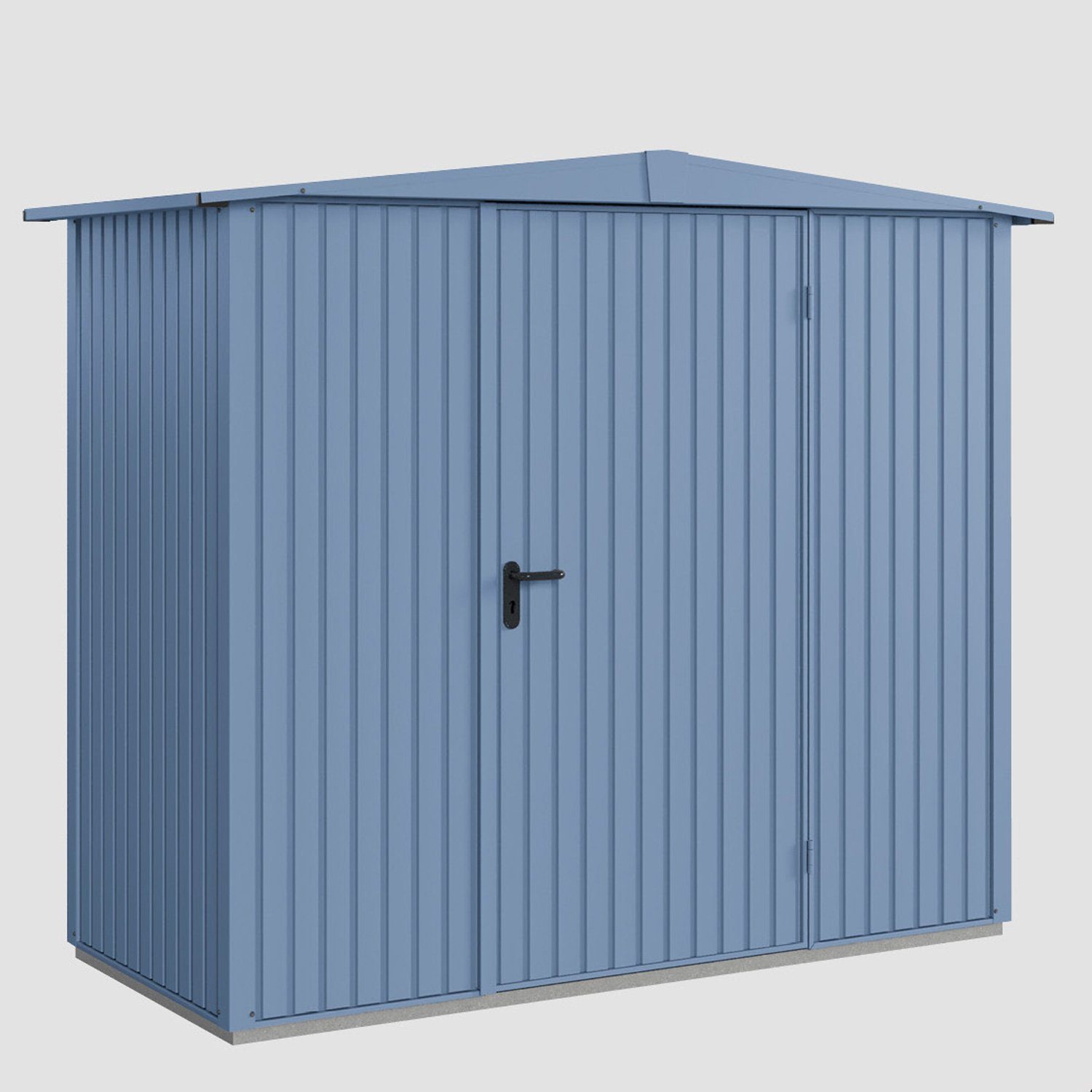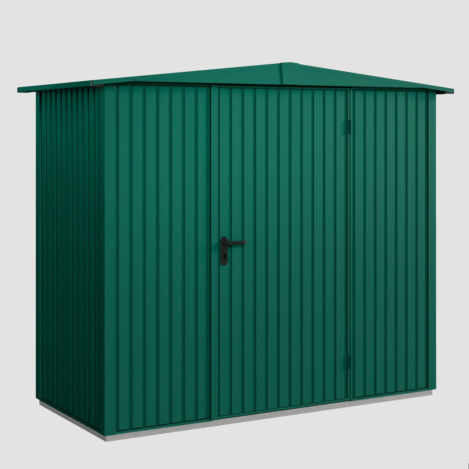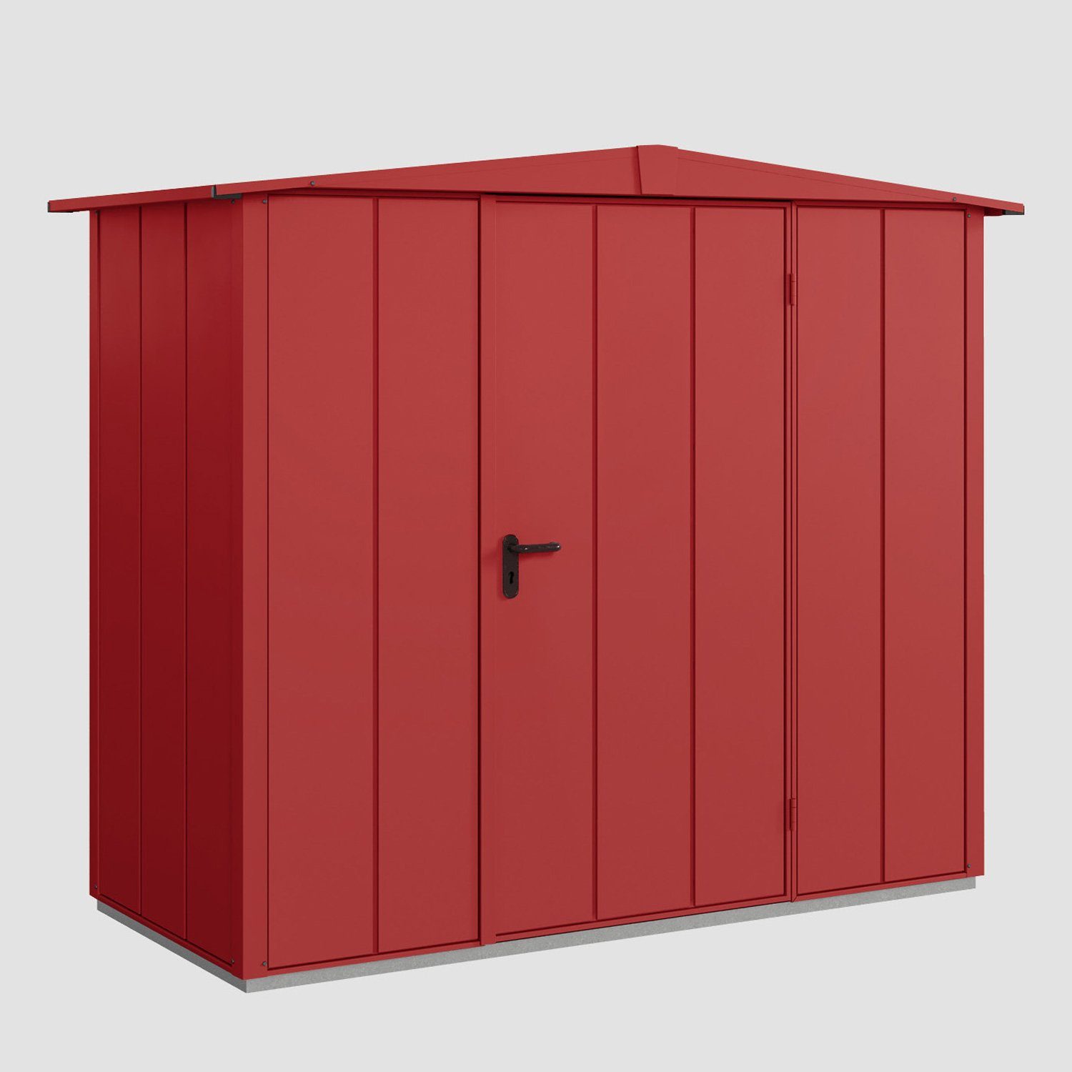 Die EcoStar Gerätehäuser mit Satteldach bieten komfortable Lösungen mit cleverem Stauraum in verschiedenen Größen und Farben. Im Zusammenspiel mit dem funktionalen und praktischen Zubehör findet sich für alles der optimale Platz. Die Häuser werden in einem maximalen Vorfertigungsgrad angeliefert. Der stabilisierende Alu-Bodenrahmen ist bereits im Preis enthalten. Aufbau und Montage gestalten sich damit einfach, schnell und unkompliziert. EcoStar Gerätehäuser ELEGANT mit Satteldach sorgen mit ihrem breiten Motiv für einen modernen und ansprechenden Look. Langlebige und qualitativ hochwertige Materialien garantieren dabei eine sehr gepflegte Optik. Oberlichter sorgen für angenehmes Licht im Inneren und der Dachvorsprung schützt bei Regen. In drei unterschiedlichen Größen bieten diese Gerätehäuser viele Zubehöroptionen und ausreichend Stauraum für alles, was den Garten und die Freizeit lebenswert macht. Von Gartengeräten bis zum Fahrrad – alles ist sicher verstaut, dank zuverlässiger Schlösser und Bänder. Mit den Gerätehäusern von EcoStar schaffen Sie einen schönen Platz für Ordnung in Ihrem Garten.