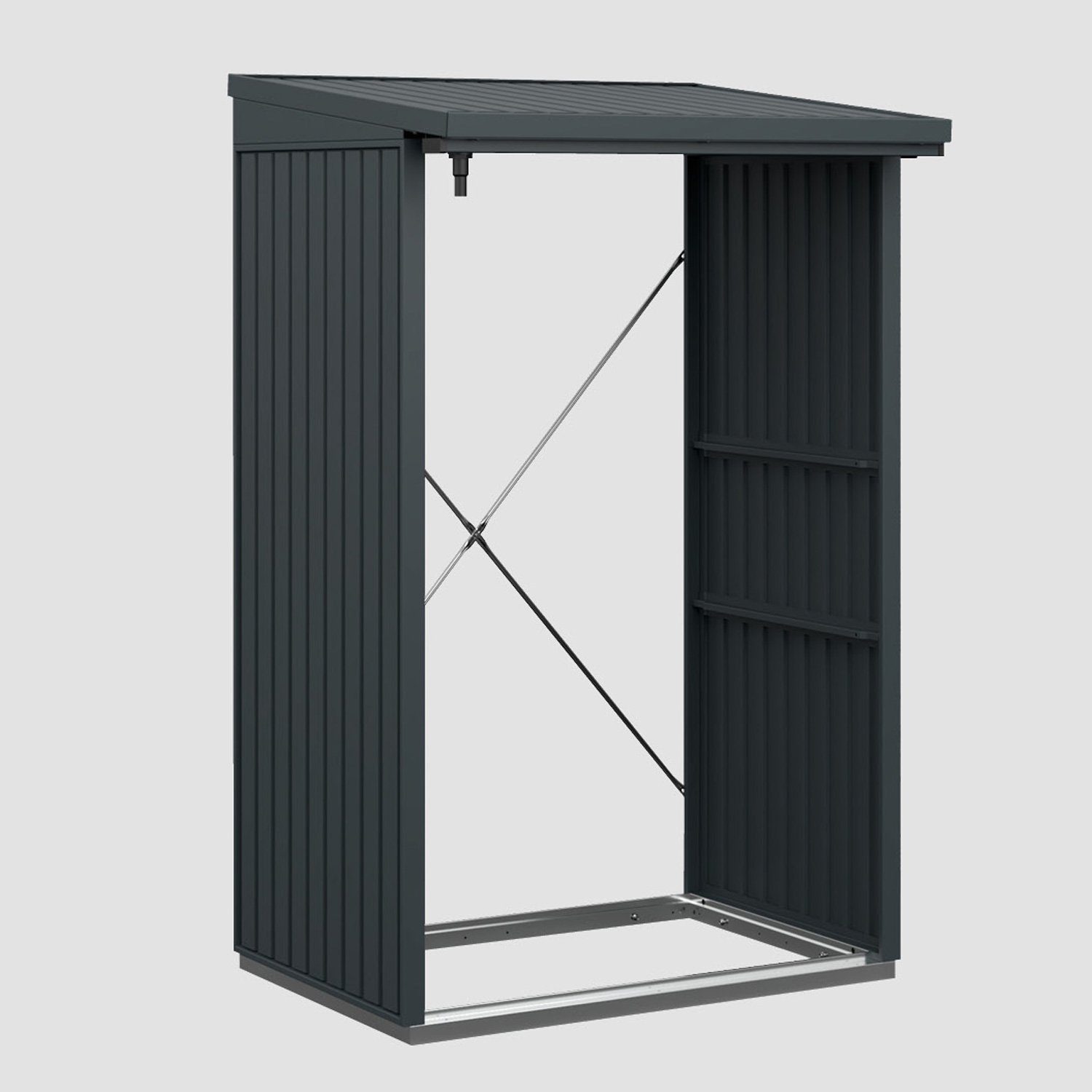 Funktionalität in ansprechendem Design! Gerade in der Übergangszeit bietet ein Kamin ein echtes Mehr an Lebensqualität. Für die optimale und saubere Unterbringung des Holzes bietet EcoStar das neue Kaminholzregal. Hier findet das Holz den perfekten Schutz vor Regen und Schnee. Das praktische Aufbewahrungslager gibt es in zwei Größen, die Platz für bis zu 3 Raummeter bzw. 5 Schüttraummeter bieten. Das EcoStar Kaminholzregal ist aus feuerverzinktem, formstabilem Stahlblech und damit praktisch wartungsfrei. Das schmal laufende Motiv der EcoStar Kaminholzregale TREND sorgt für einen harmonischen und aufgeräumten Look. Der Alu-Bodenrahmen, der vor Rost schützt und fu¨r Stabilität sorgt, ist bereits im Preis enthalten.
