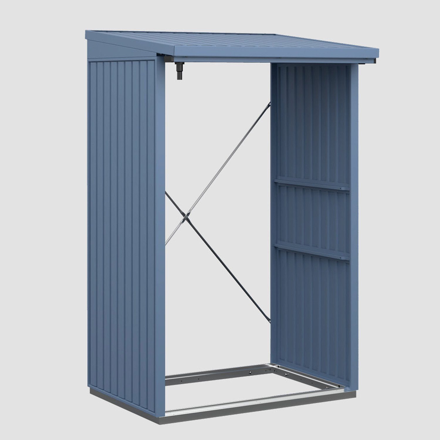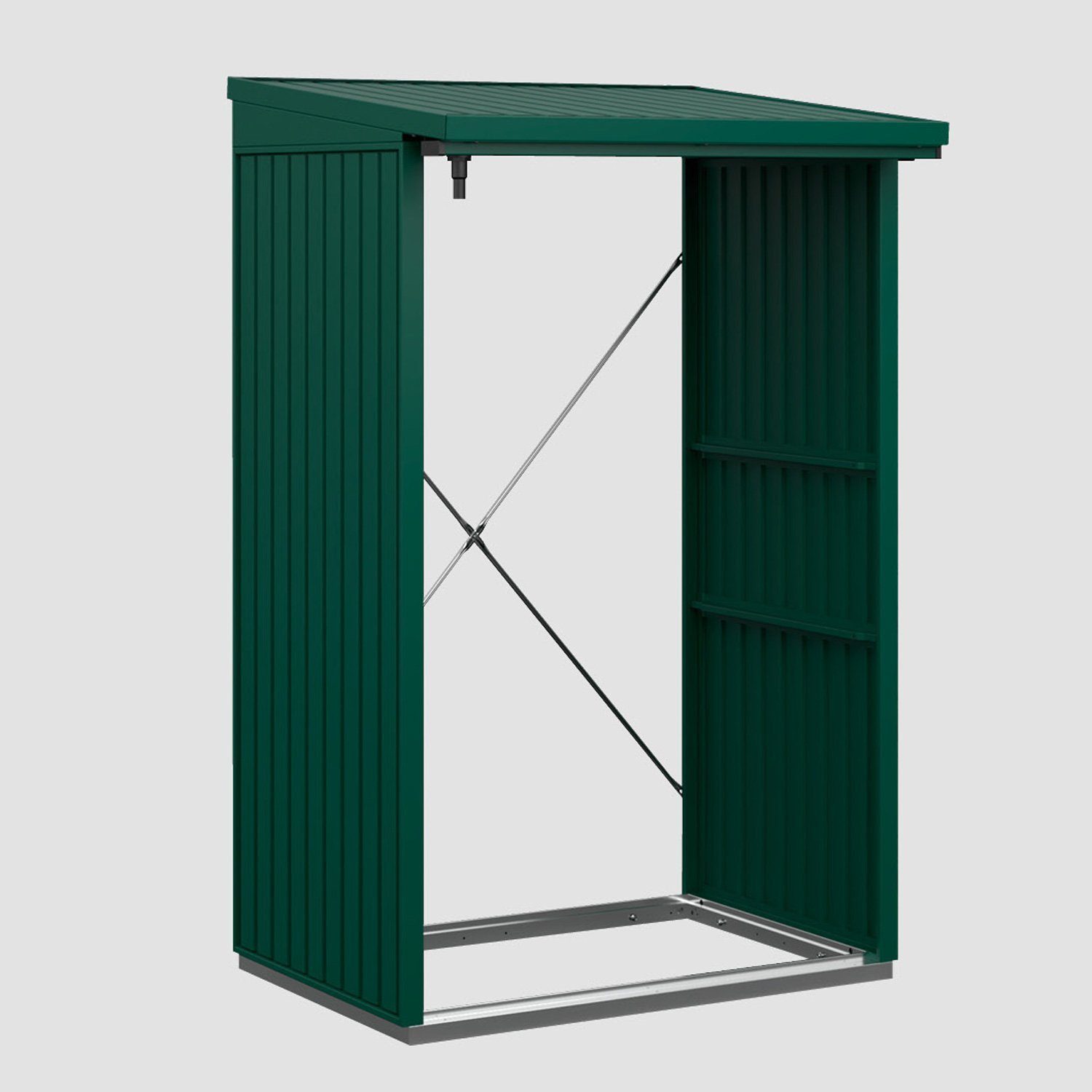 Holzlagerung in zwei Reihen möglich, Platz für bis zu 3 Raummeter oder 5 Schüttraummeter Holz