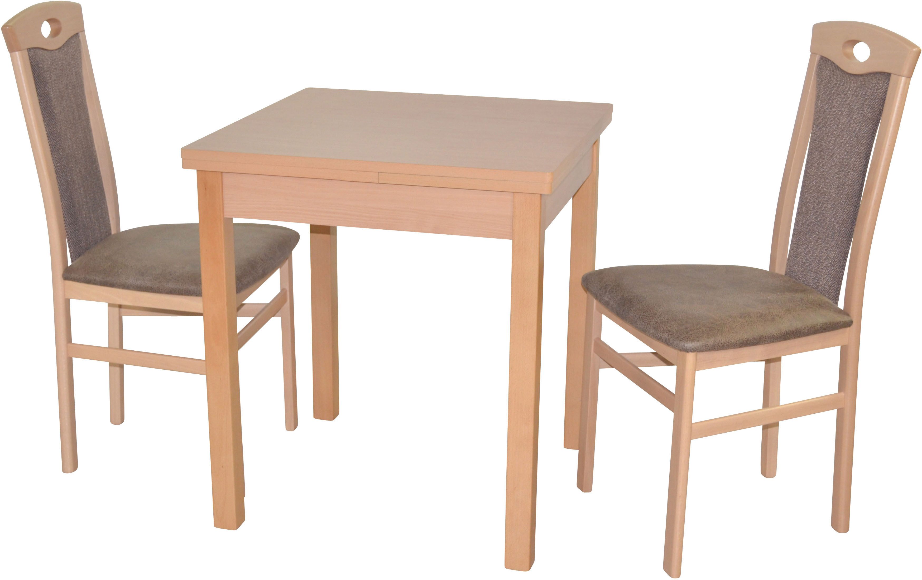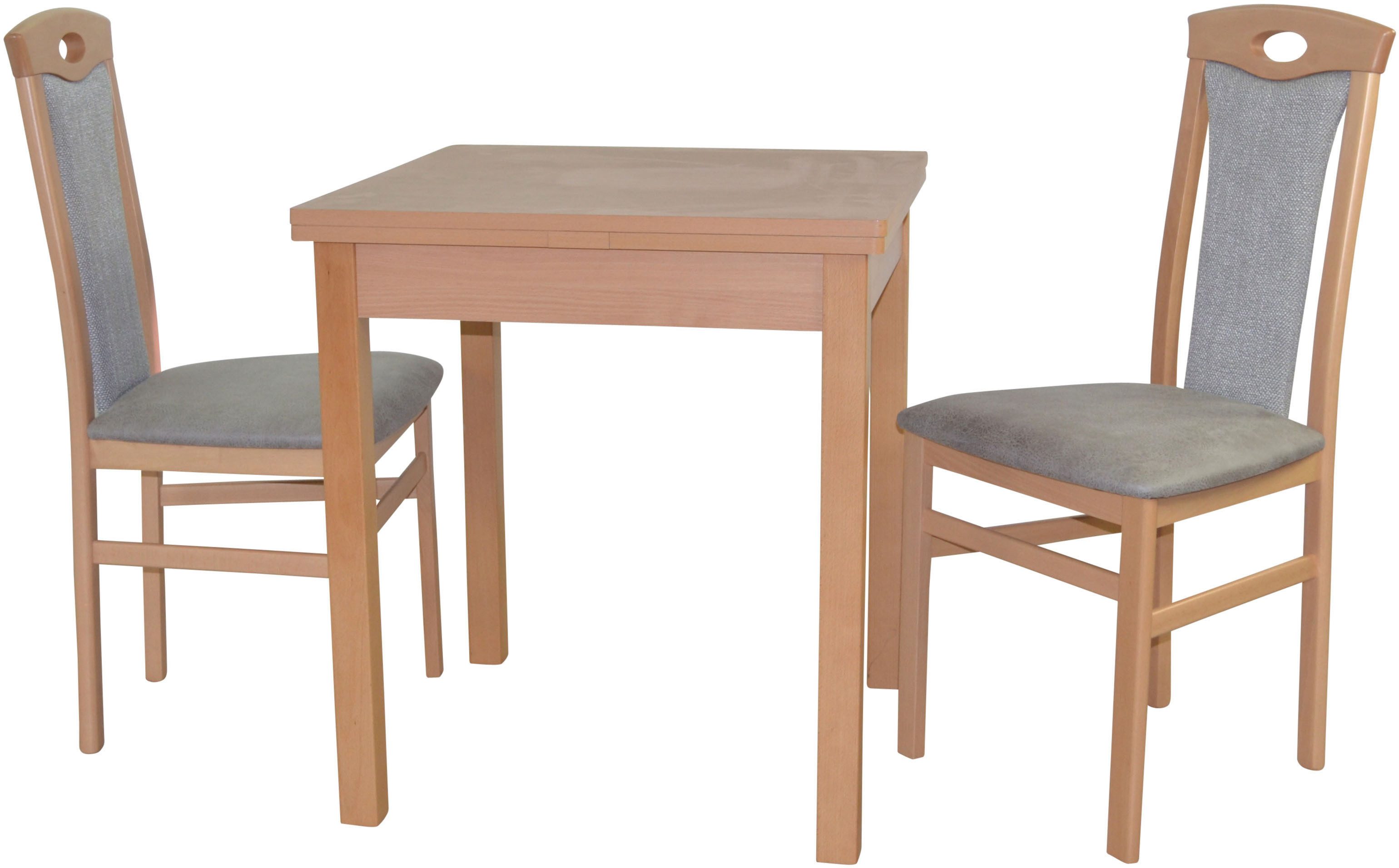 Set beinhaltet | 1 Esstisch mit Auszugsfunktion, 2 Massivholzstühle |