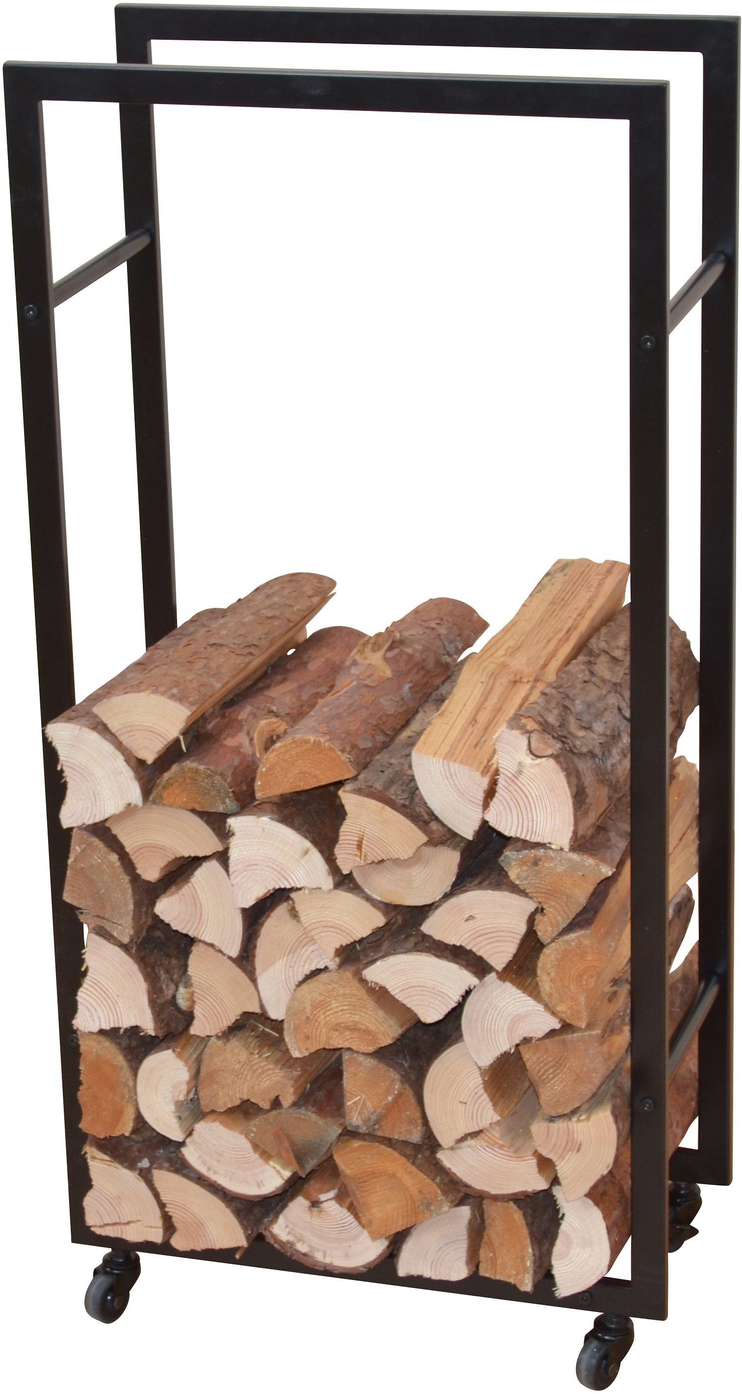 Wissenswertes | Artikeldetails: Kaminholzregal mit Rollen, Artikeldetails: Dekoratives und praktisches Holzregal, Artikeldetails: Stabile Konstruktion, Maße: Maße (B/T/H): 48/24/100 cm, Material/Qualität: Aus Metall |