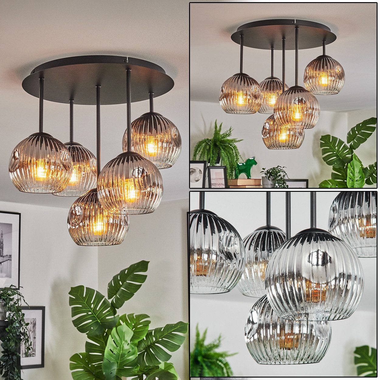 hofstein Deckenleuchte Deckenlampe aus Metall/Riffelglas in Schwarz/Chrom-/Rauchfarben/Klar, Deckenleuchte im Retro/Vintage-Design (Schirme Ø 15 cm), 5 x E14
