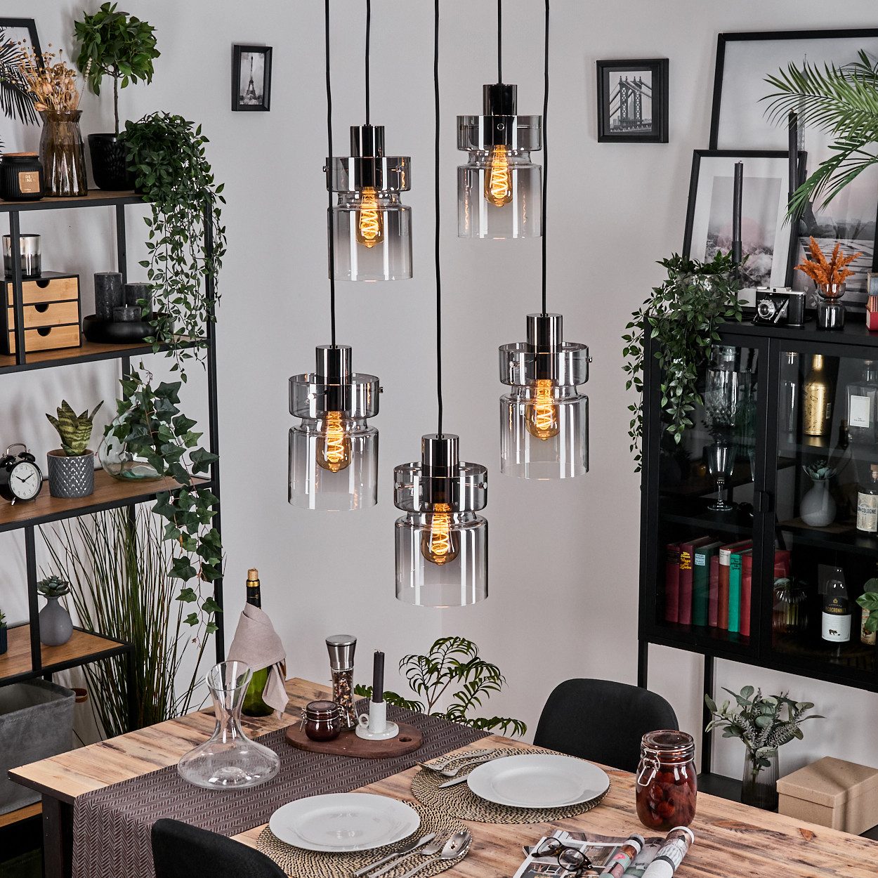 hofstein Hängeleuchte Hängelampe aus Metall/Glas in Schwarz/Chrom-/Rauchfarben/Klar, ohne Leuchtmittel, verstellbare Pendelleuchte im Vintage/Retro-Design (15 cm), 5 x E27