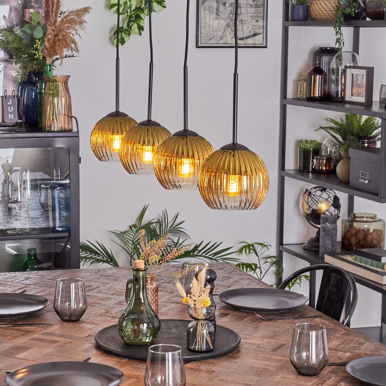 • Die 120 cm lange Hängeleuchte aus robustem Metall mit stilvollem Riffelglas Schirm eignet sich perfekt zur Beleuchtung über dem Esszimmer oder im gemütlichen Wohnzimmer.