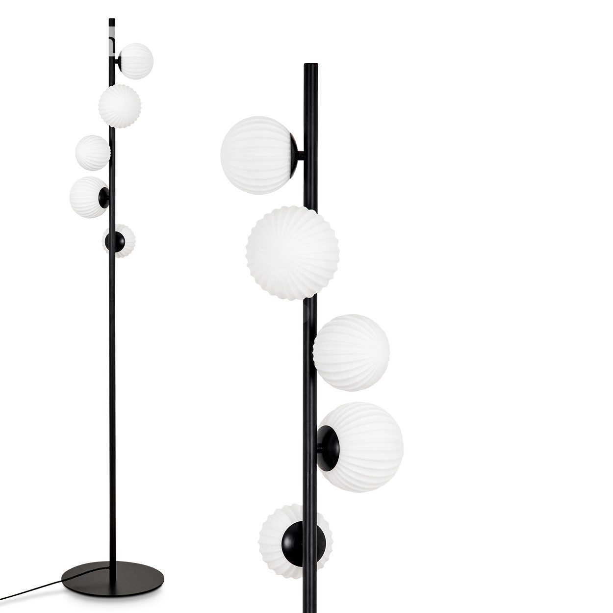 hofstein Stehlampe Stehlampe aus Metall/Riffelglas in Schwarz/Weiß, ohne Leuchtmittel, Leuchte mit Glasschirmen(10cm, 12cm),Schalter,5xG9, ohne Leuchtmittel