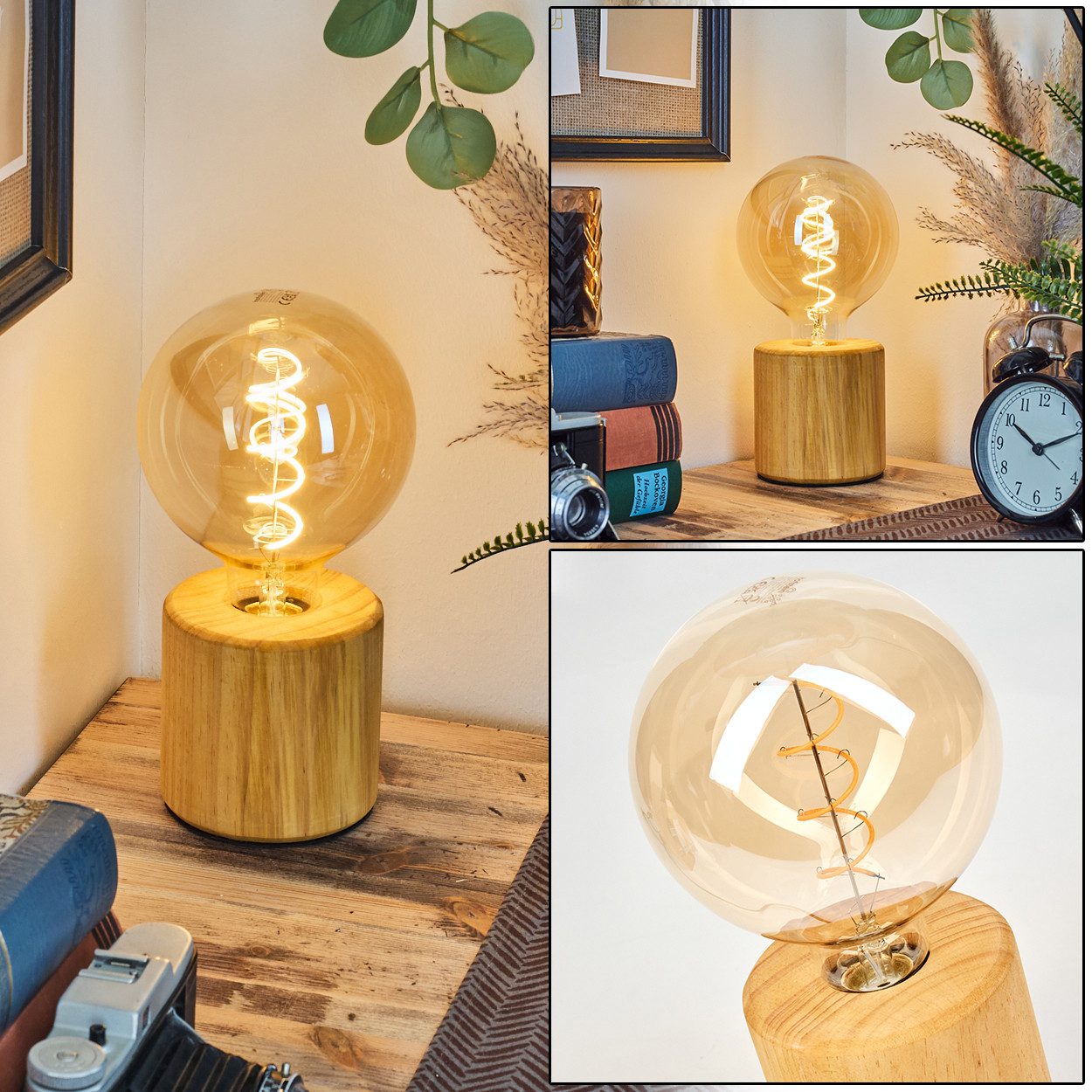 hofstein Tischleuchte Tischlampe aus Holz in Naturfarben im skandinavischen/Boho-Design, ohne Leuchtmittel, moderneTischleuchte mit Schalter am Kabel, Höhe 10 cm, E27