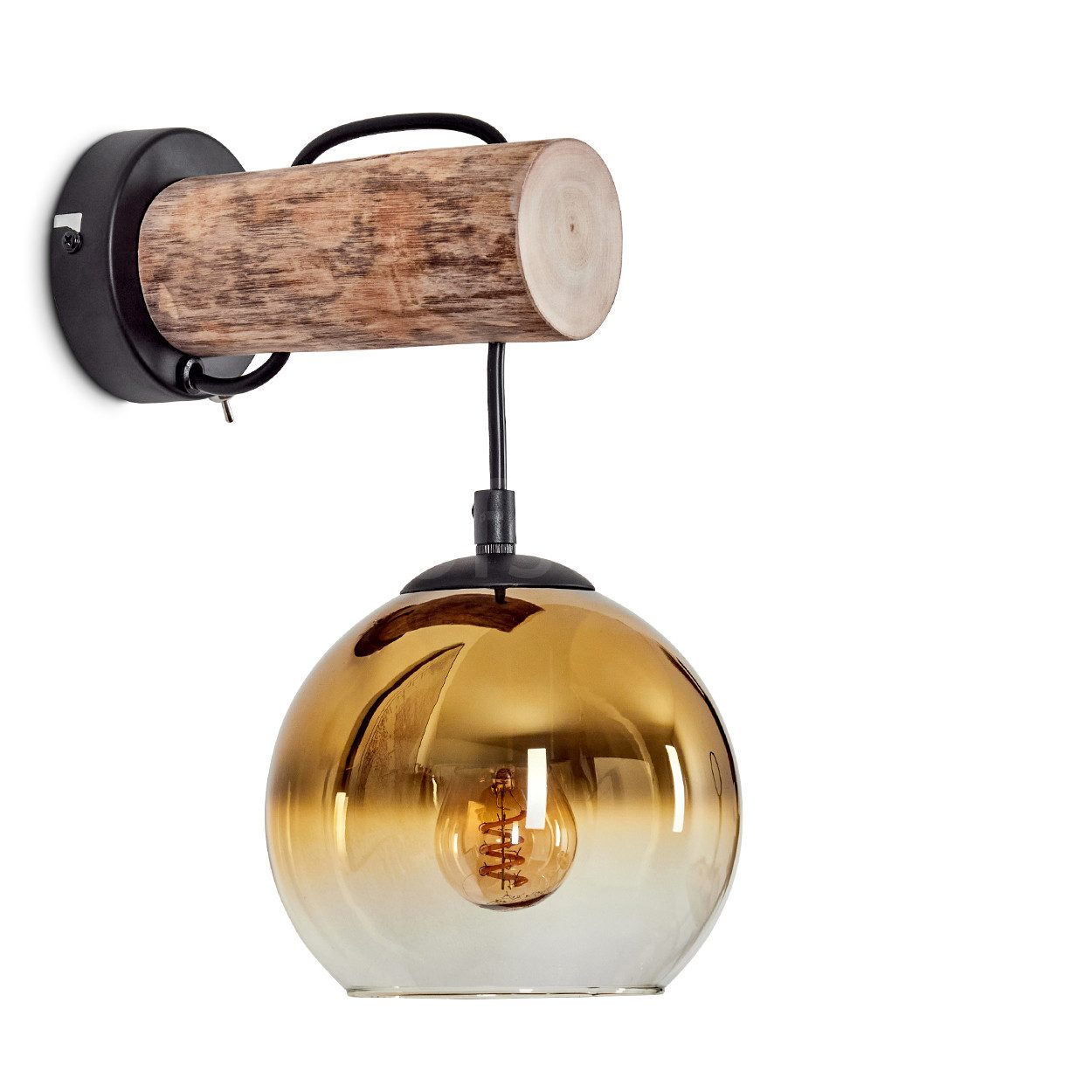 hofstein Wandleuchte Wandlampe aus Metall/Holz/Glas in Schwarz/Natur/Gold/Klar, ohne Leuchtmittel, Leuchte mit Glasschirm, An/-Auschalter, 1xE27, ohne Leuchtmittel