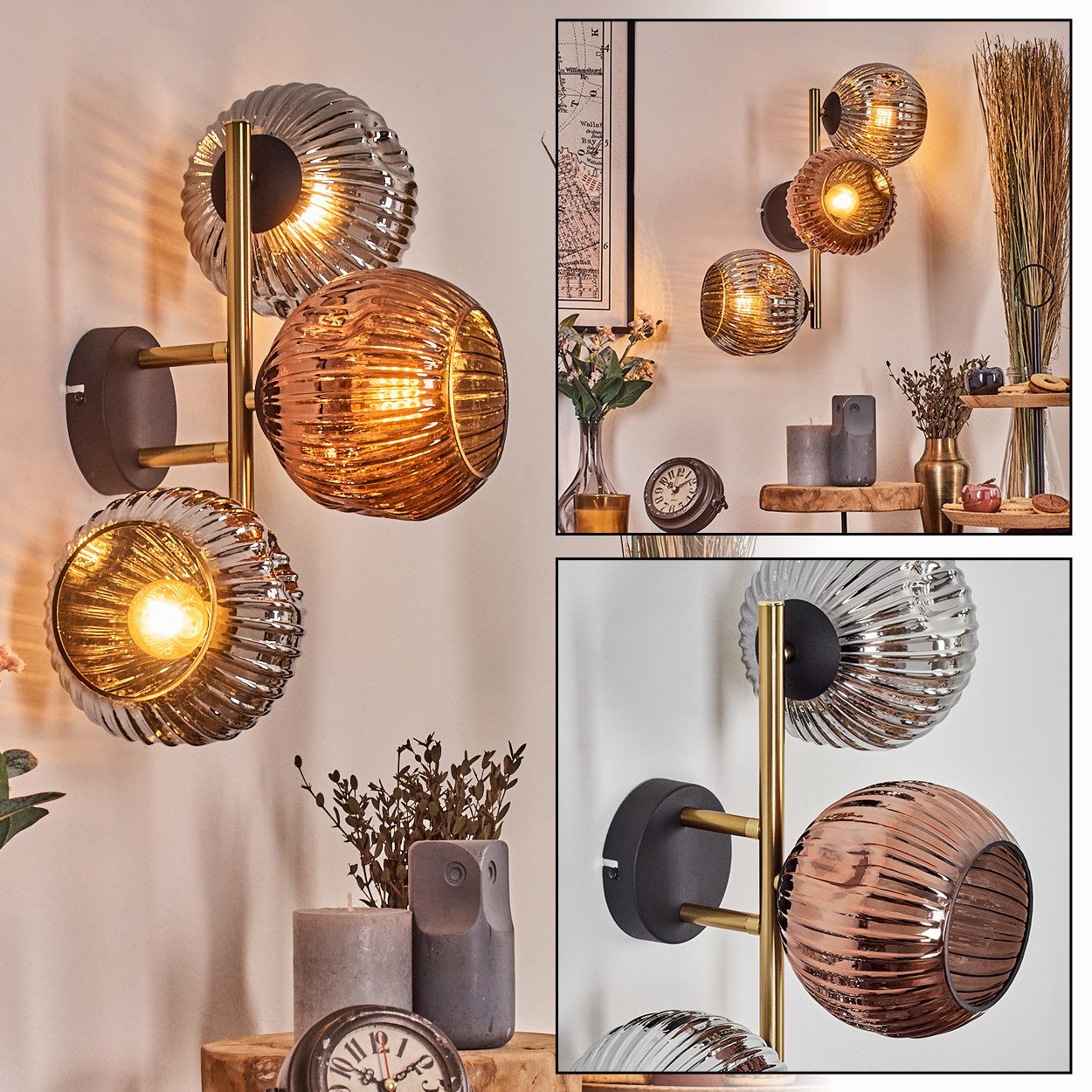 hofstein Wandleuchte Wandlampe aus Metall/Riffelglas in Schwarz/Gold/Chrom/Rauch/Kupfer, ohne Leuchtmittel, moderne Wandleuchte im Retro/Vintage-Design (Schirme 15 cm), E14
